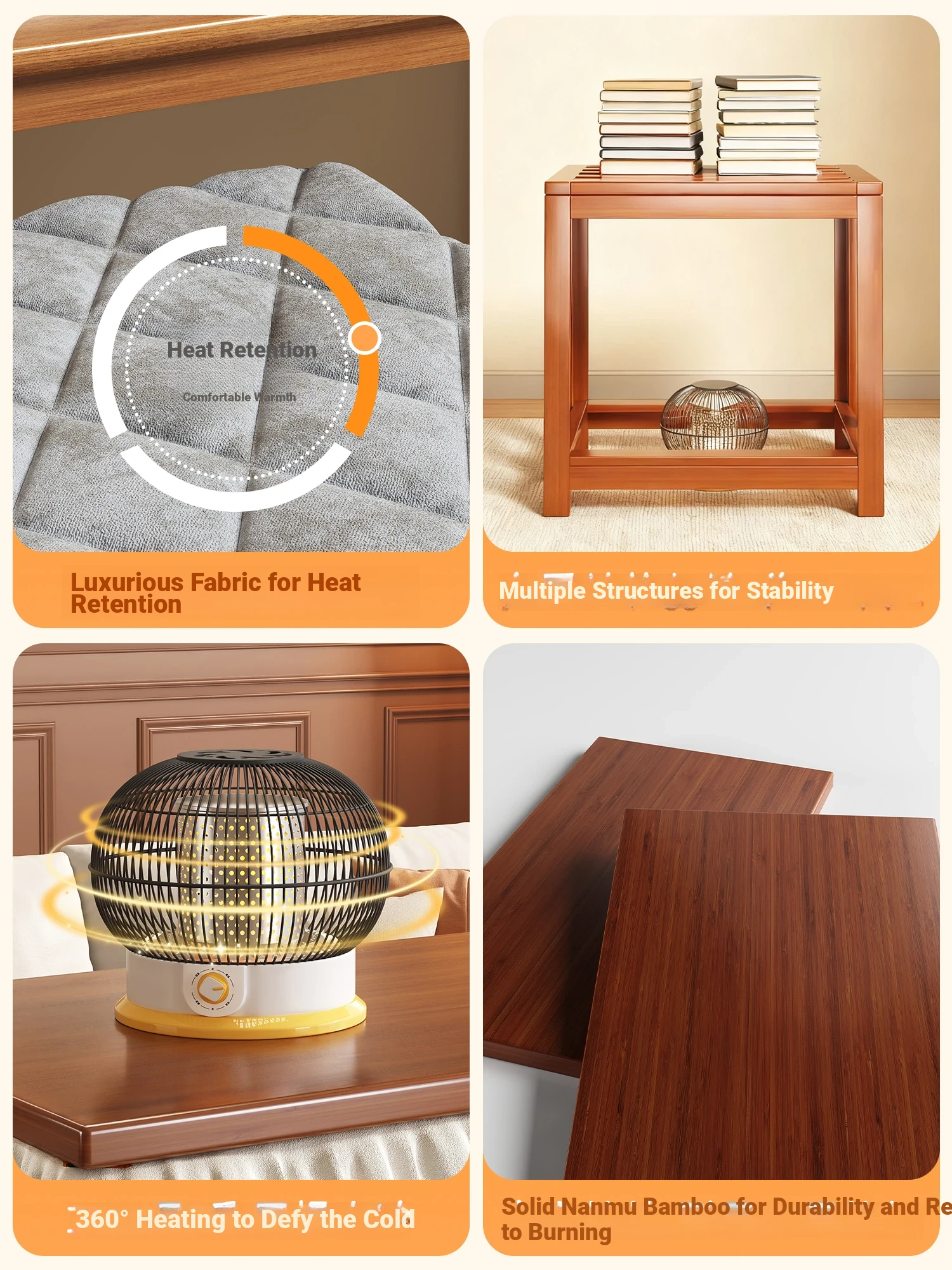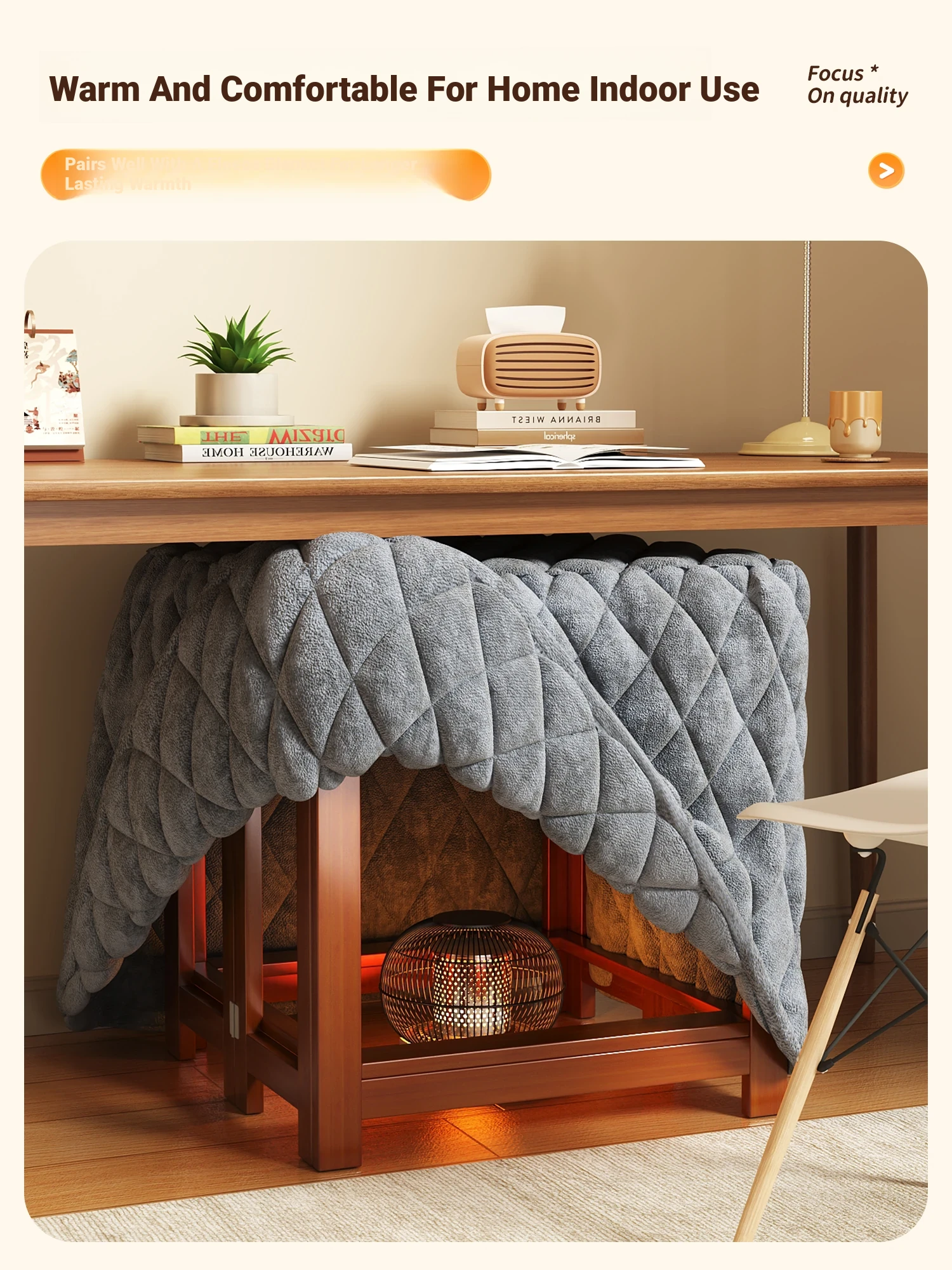 New湖南 Folding Heating Table - Compact Square Fireplace Desk for Home & Office, Perfect for Cozy Warmth While You Work or Relax