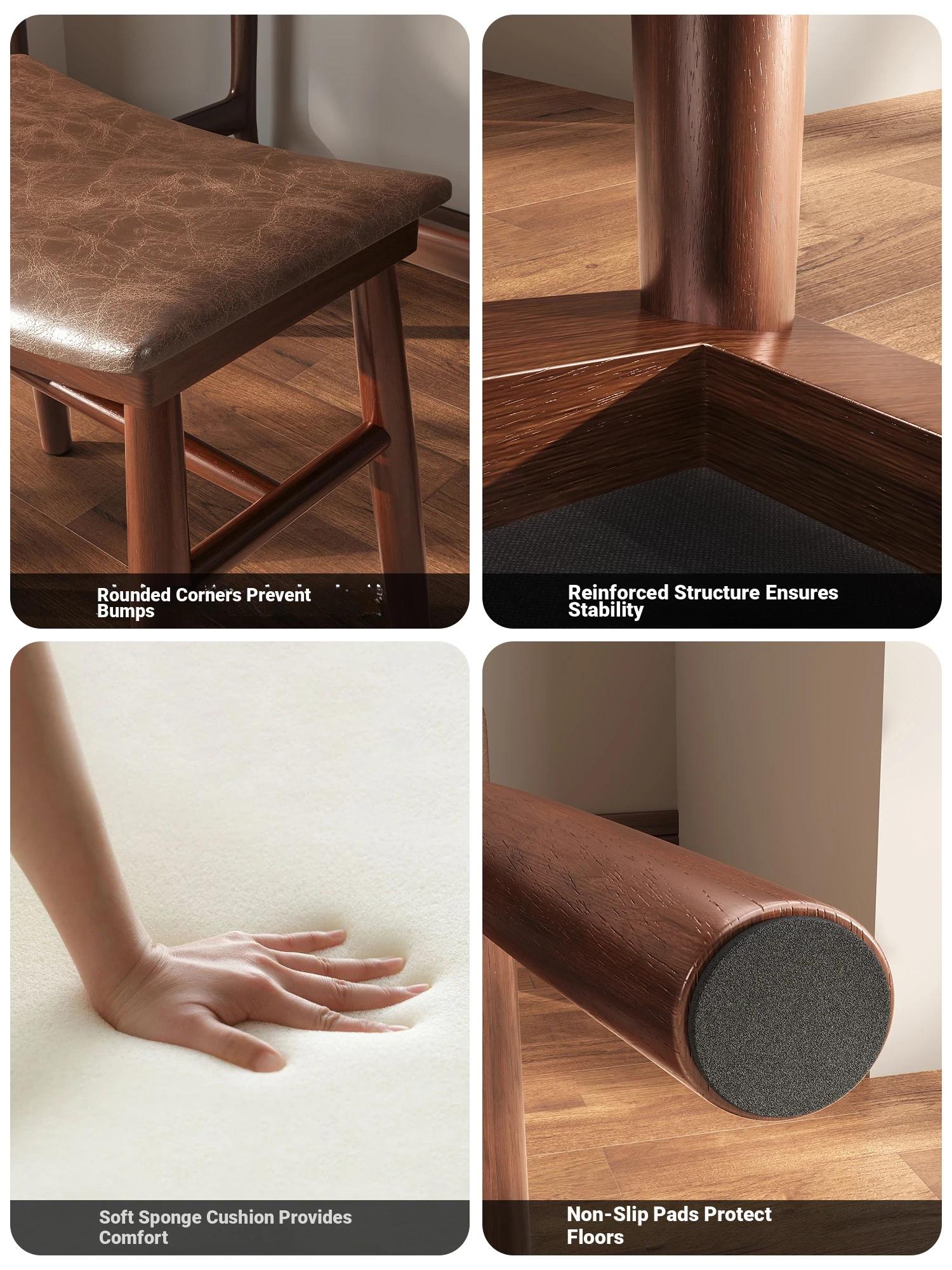 [Upgraded Model] Imported Rubber Wood - Skin-Friendly Microfiber Leather Stool - Black | Dynamic Support Sponge Cushion