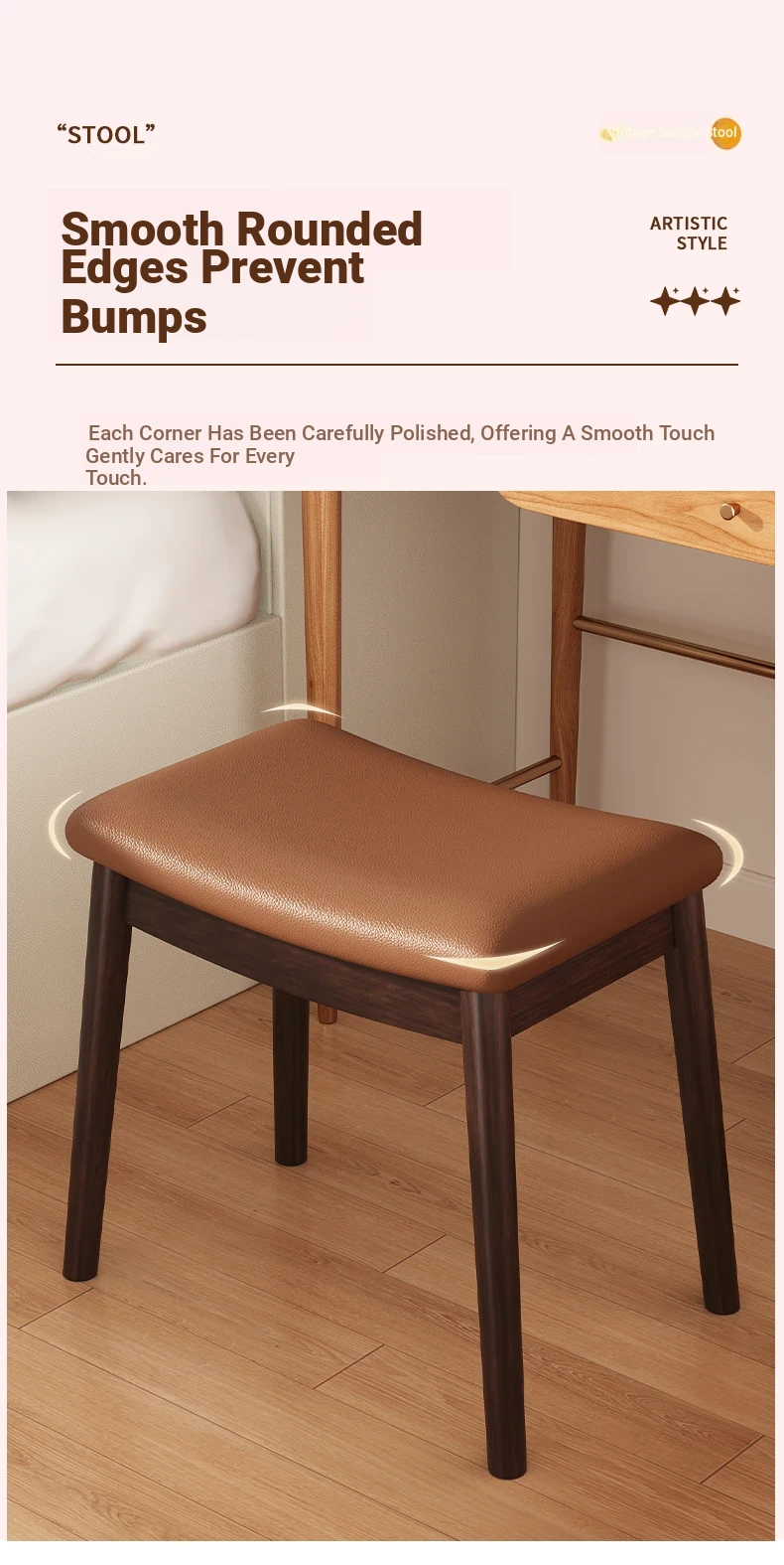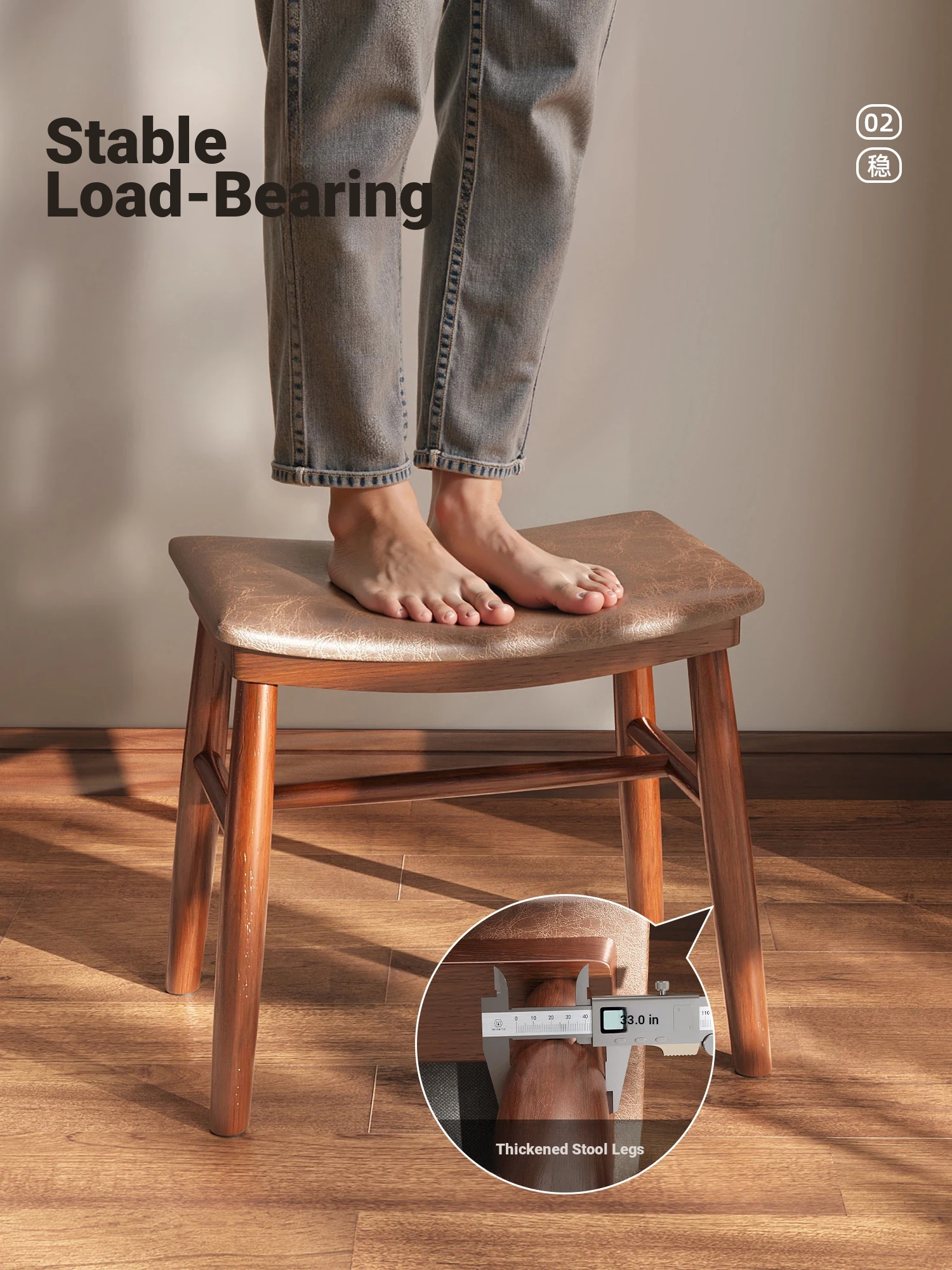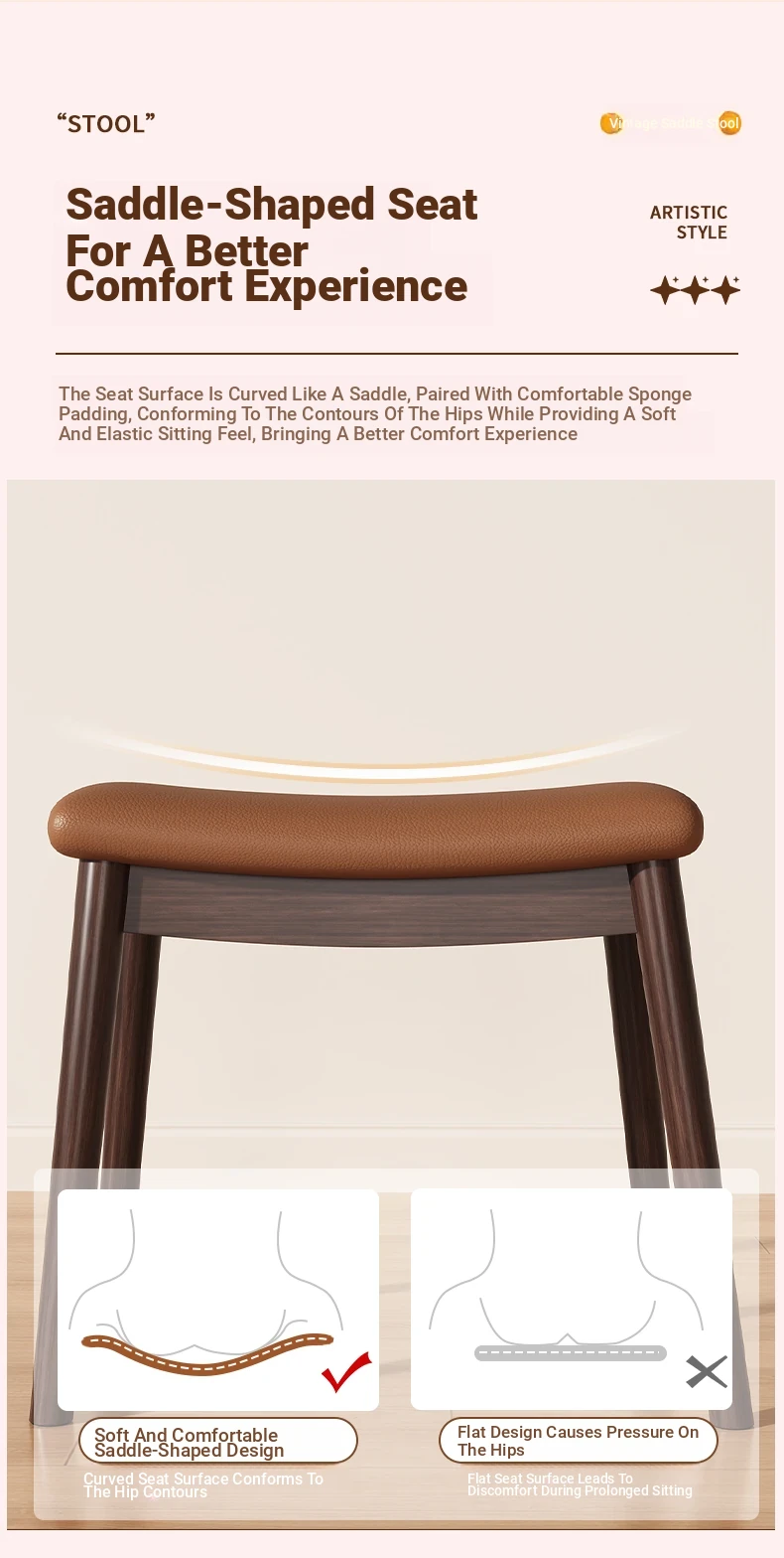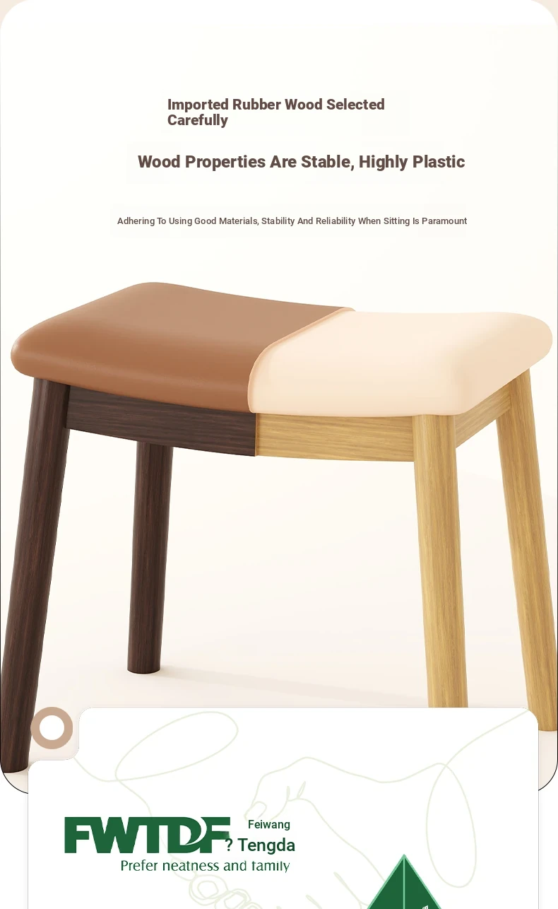 [Upgraded Model] Imported Rubber Wood - Skin-Friendly Microfiber Leather Stool - Light Brown | Dynamic Support Sponge Cushion