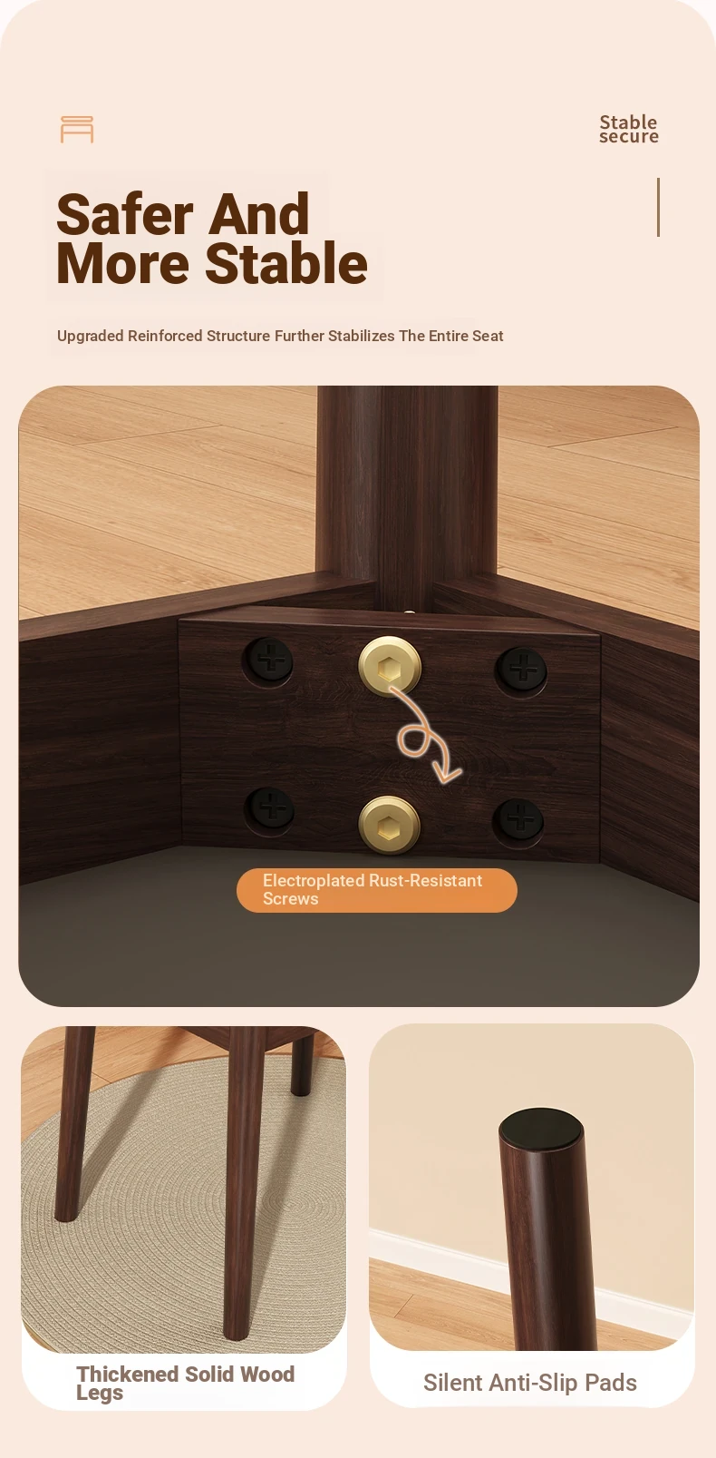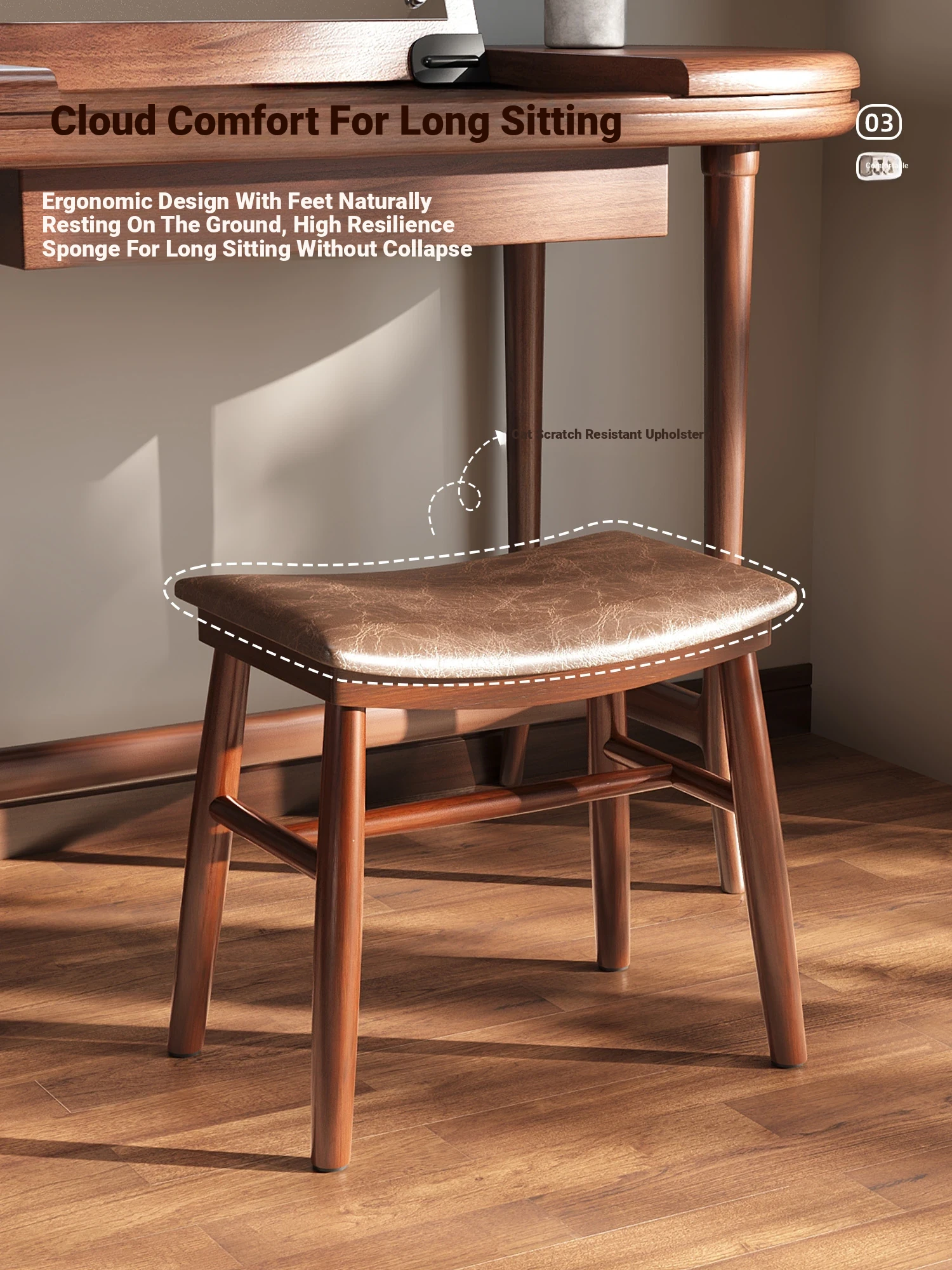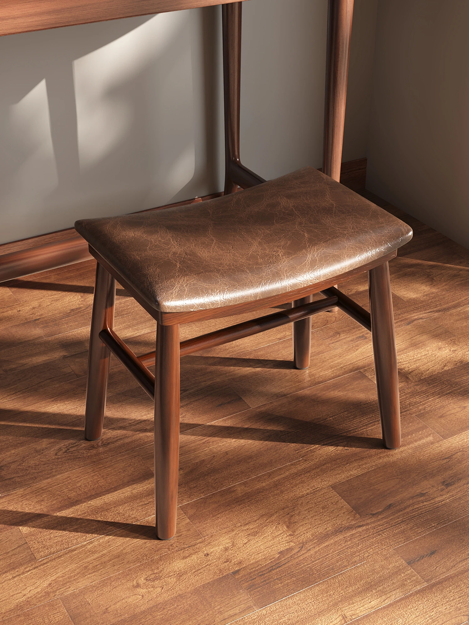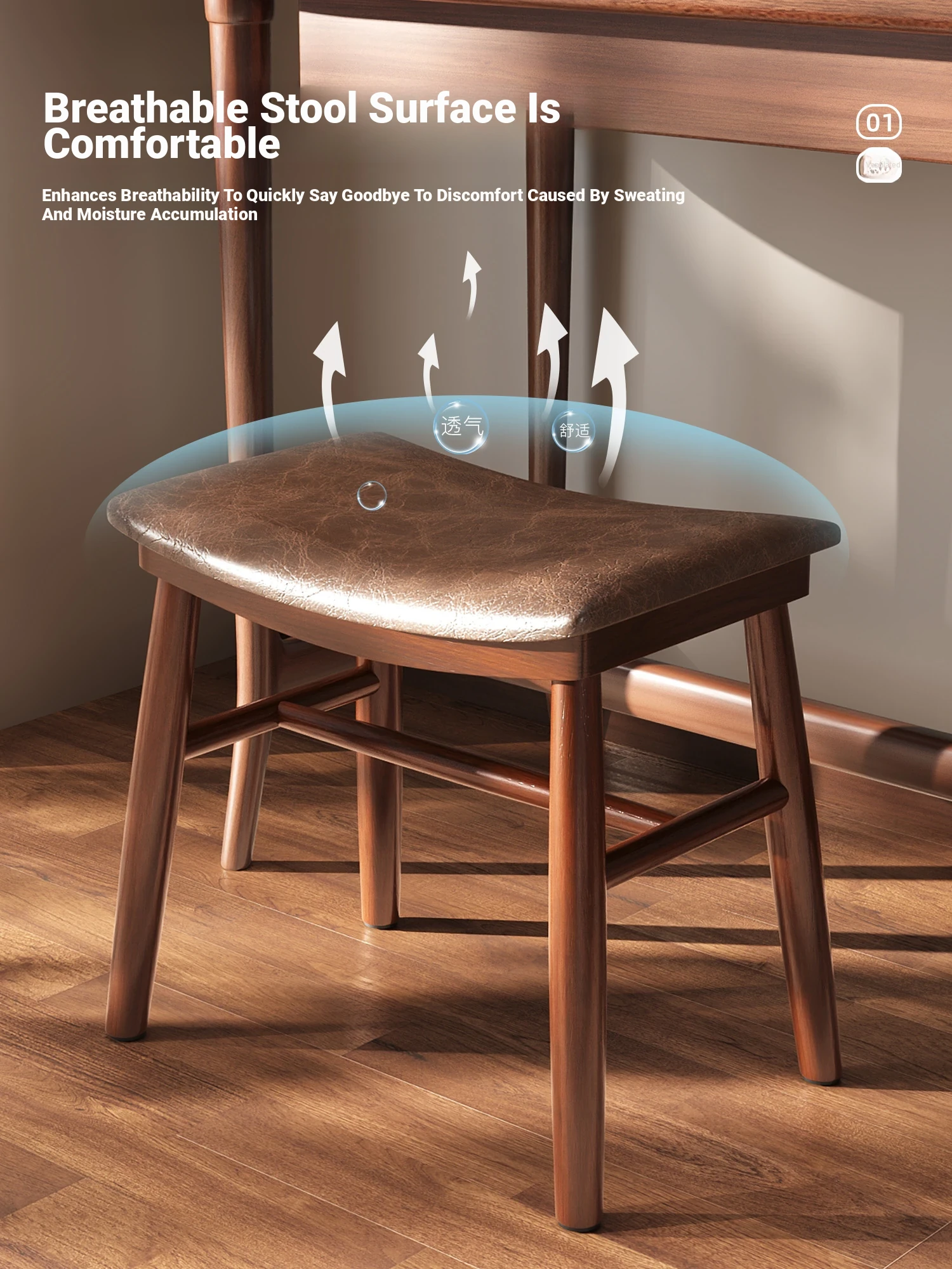 [Upgraded Model] Imported Rubber Wood - Skin-Friendly Microfiber Leather Stool - Light Brown | Dynamic Support Sponge Cushion