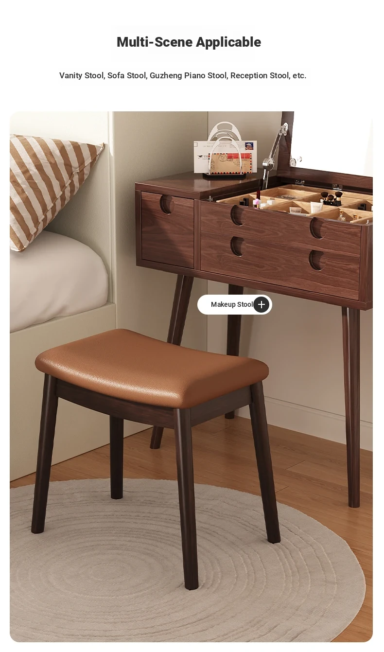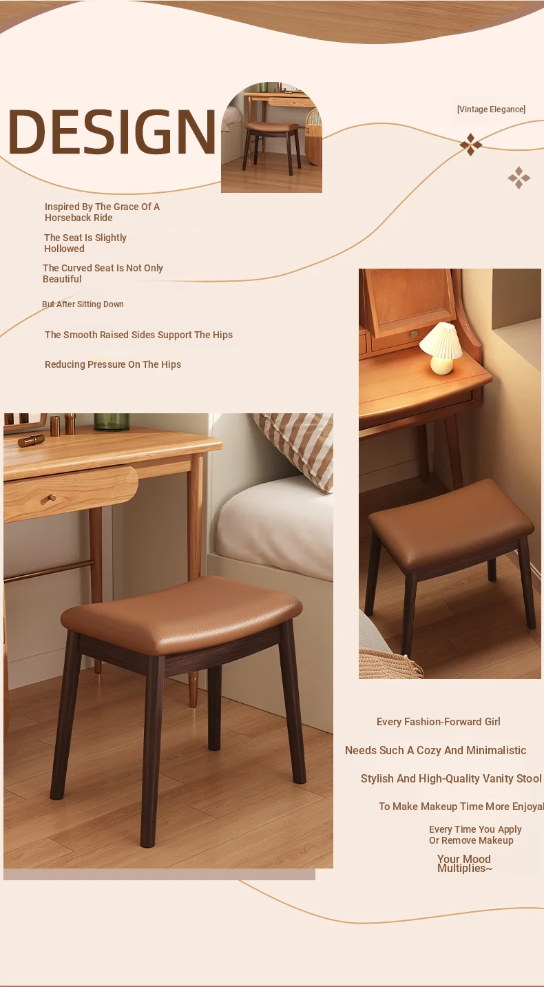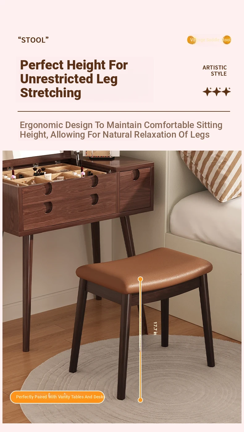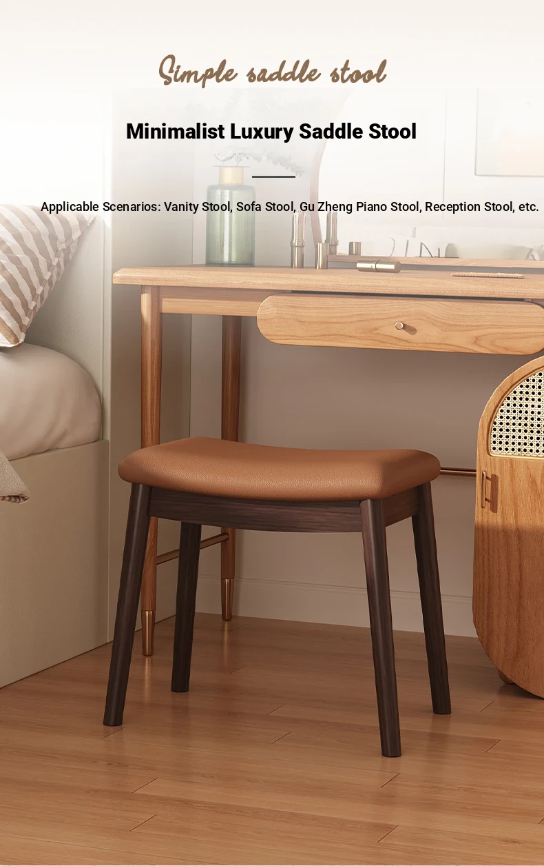 Stylish Solid Wood Vanity Stool – Versatile Makeup and Dining Stool for Bedroom, Living Room, and Study – Perfect Footrest and Saddle Stool for Any Home Décor