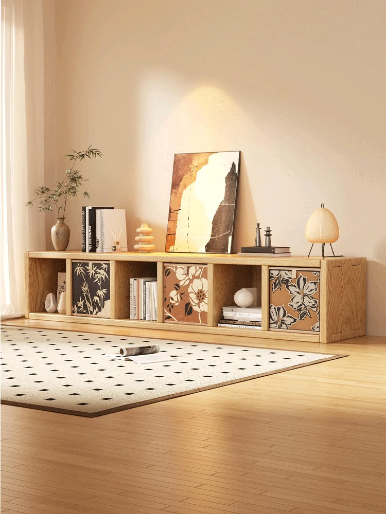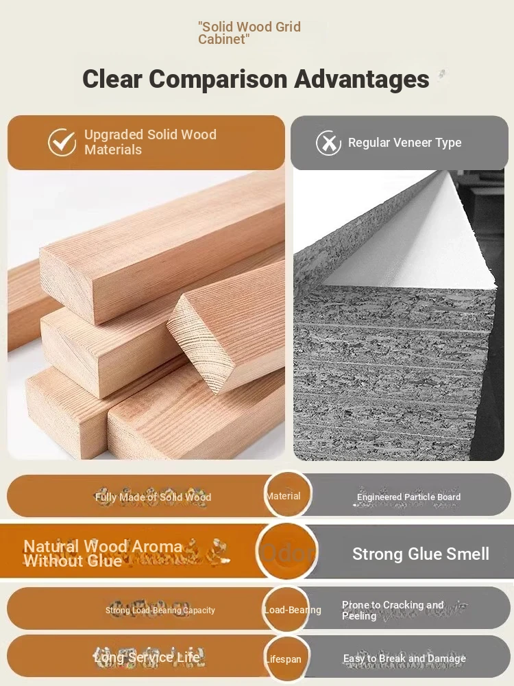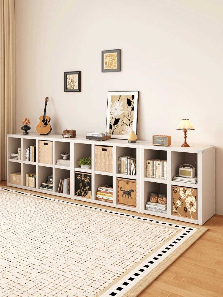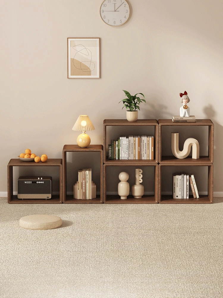 Solid Wood Grid Cabinet - Single Layer Floor-standing Bookshelf and Storage Unit, Ideal for Living Room as a Sofa Partition, Perfect for Display and Organization.