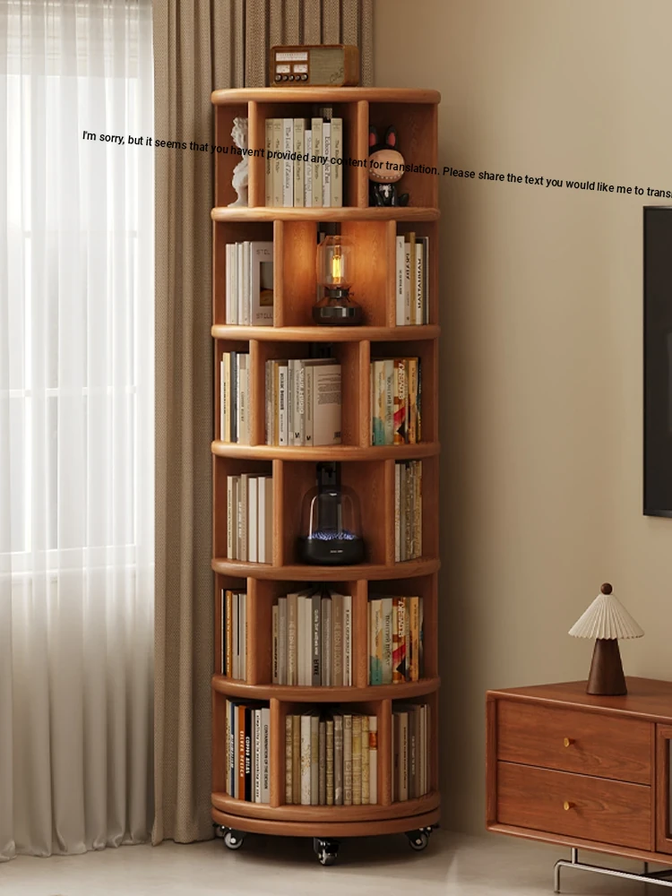 360-Degree Rotating Bookshelf - Space-Saving Corner Storage Unit with Wheels for Easy Mobility, Perfect for Living Room and Home Use