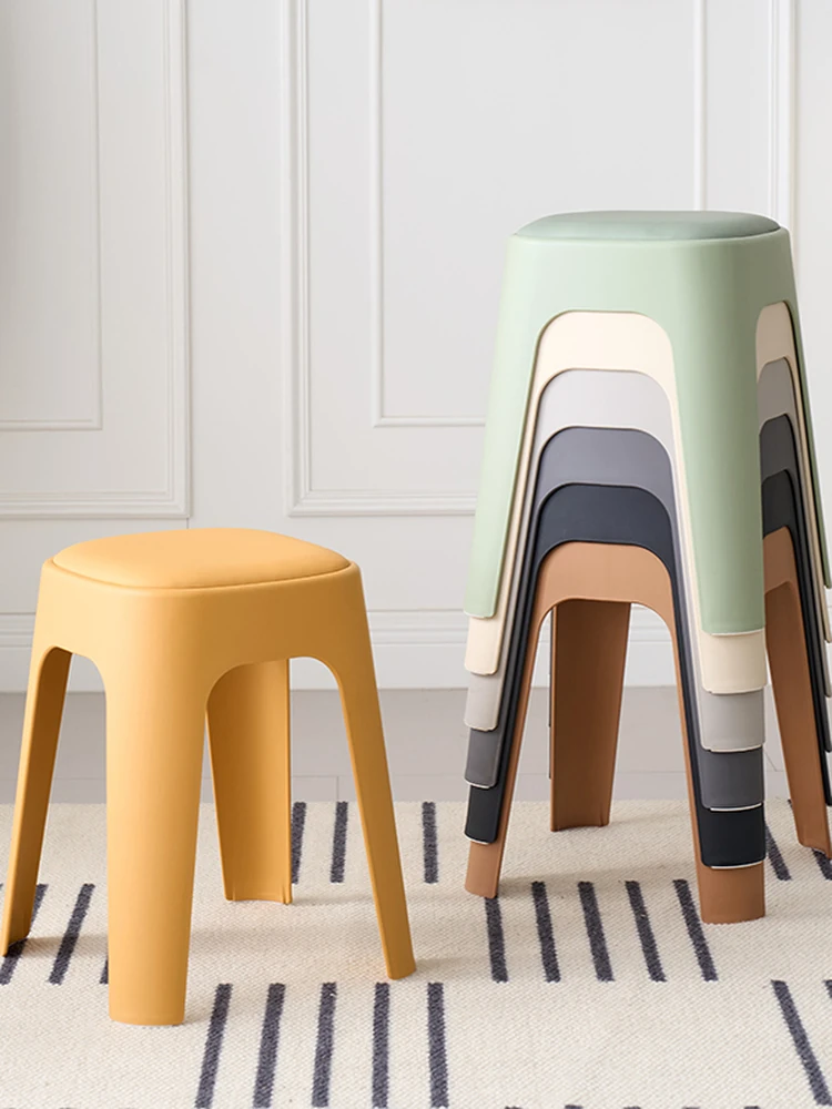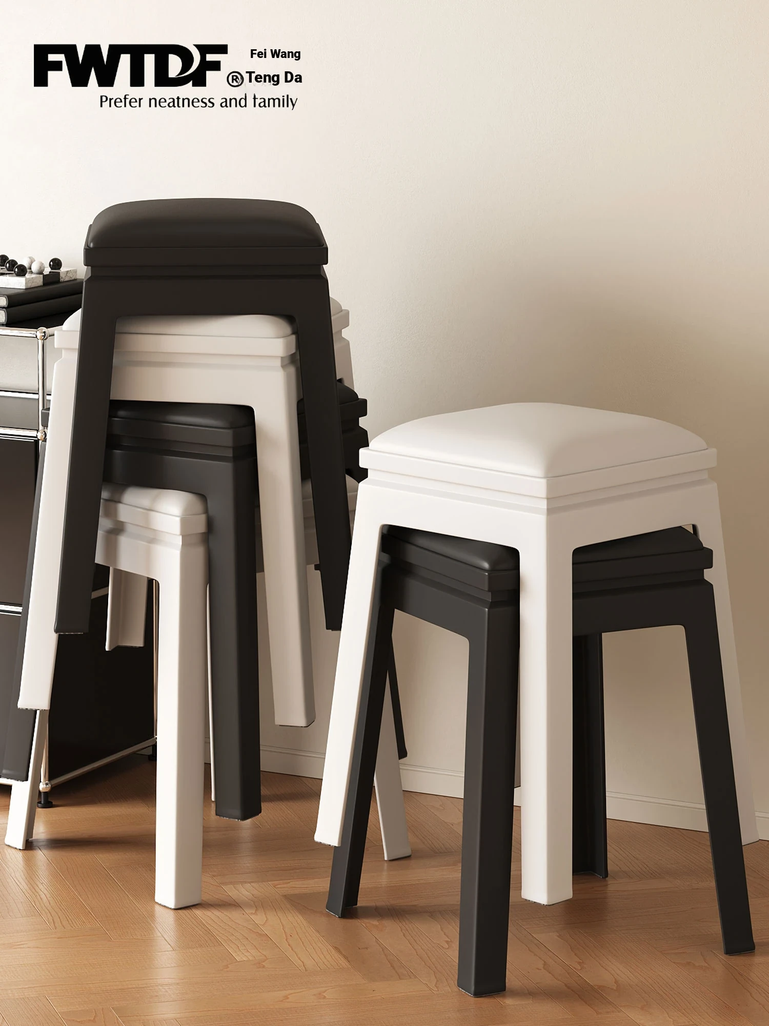 Thickened Plastic Stool for Home Use - Stackable Soft Cushion Square Bench, Stylish and Elegant Design for Living Room and Dining Table, Perfect as a Backup Chair