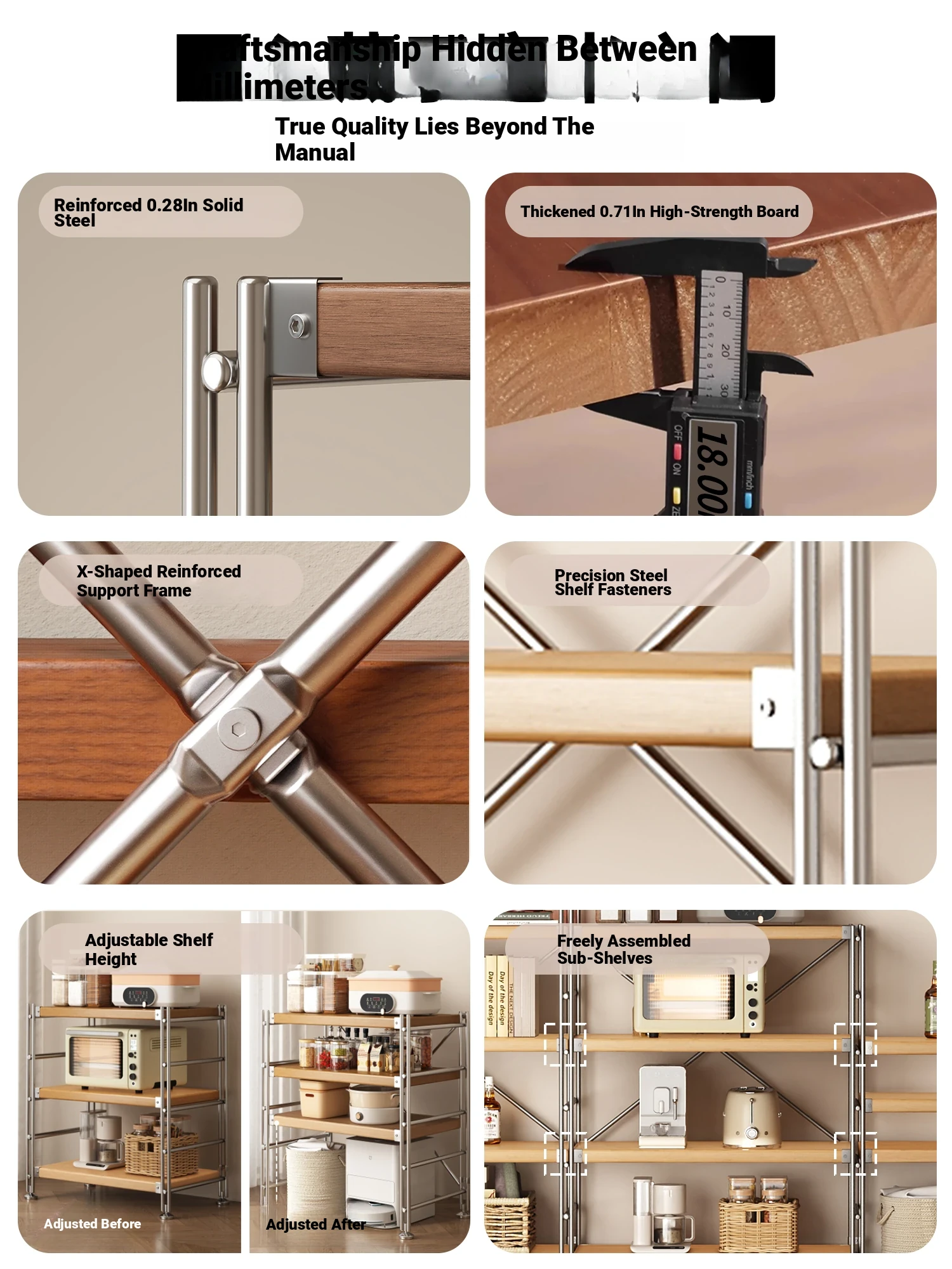Adjustable Stainless Steel Storage Rack - Vintage Style Bookshelf with Light Shaft, Freestanding Organizer for Kitchen and Balcony, Simple and Versatile Storage Solution