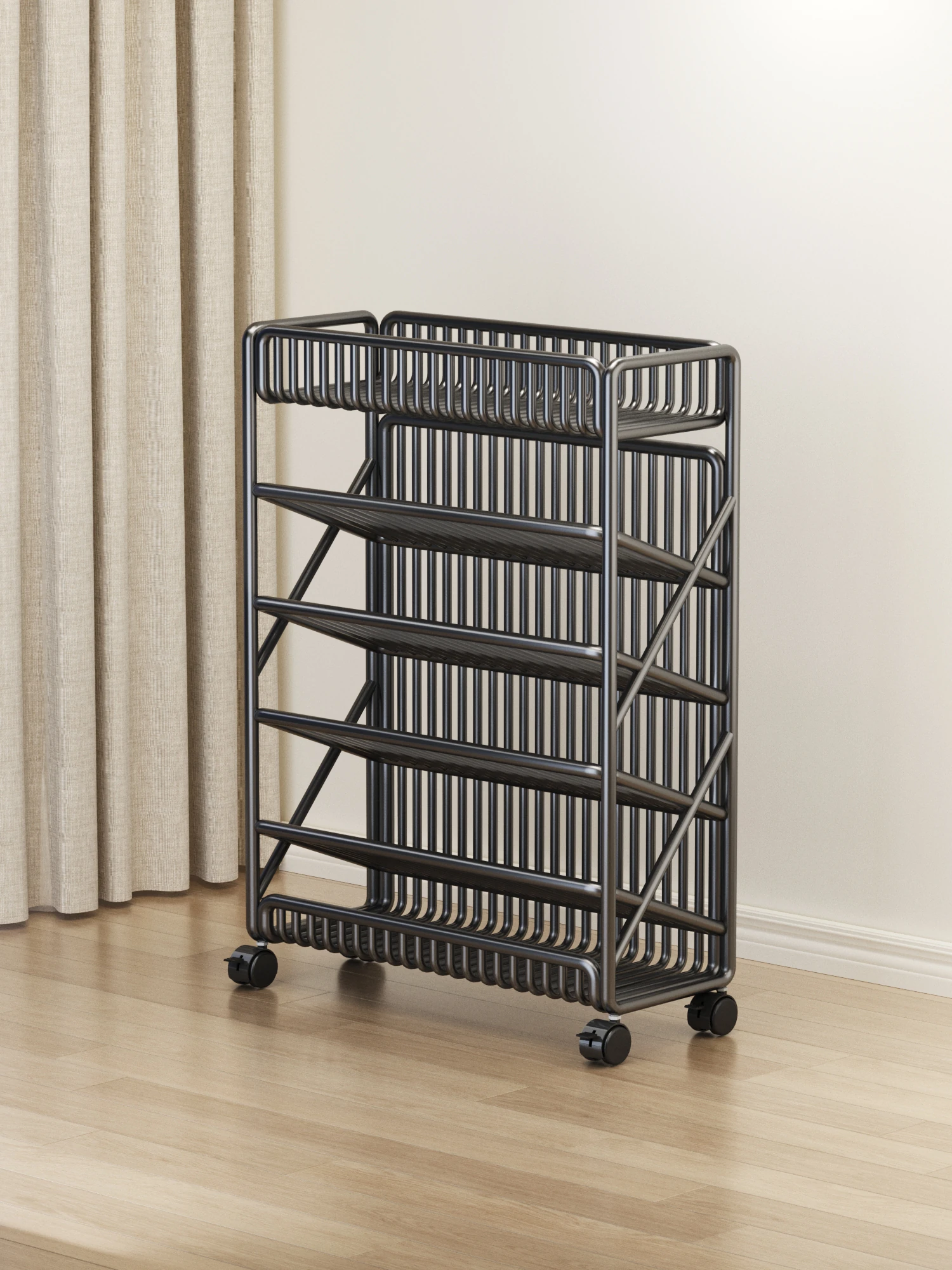 Slim Steel Bookshelf - Stylish Storage Cabinet for Living Room, Sofa Side, Kindergarten, and Hallway - Perfect for Narrow Spaces and Floor Placement