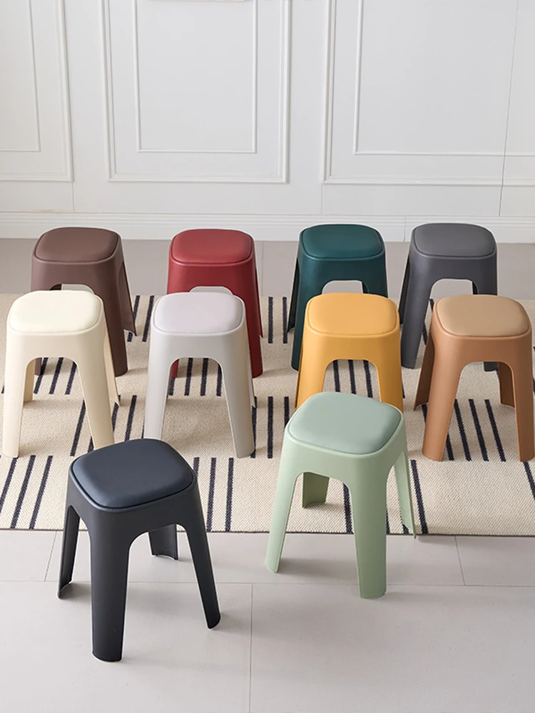 Thickened Plastic Folding Stool - Modern Soft-Padded Square Chair for Home Use, Stackable Design for Living Room and Dining Table, Elegant High Stool for Restaurants and Gatherings
