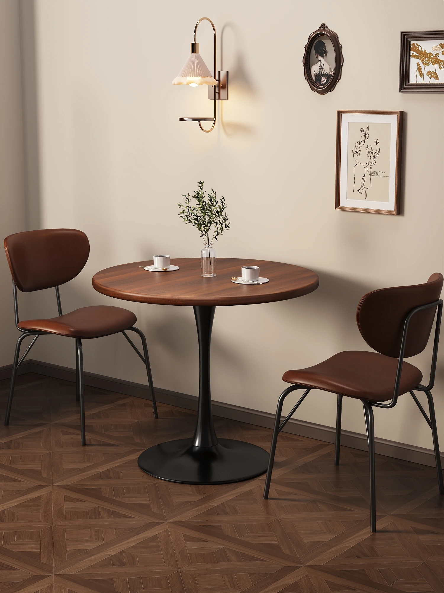 Vintage Round Dining Table - Elegant American Retro Design for Small Spaces, Perfect for Home Dining and Business Meetings, Chic Coffee Table with a Touch of Luxury