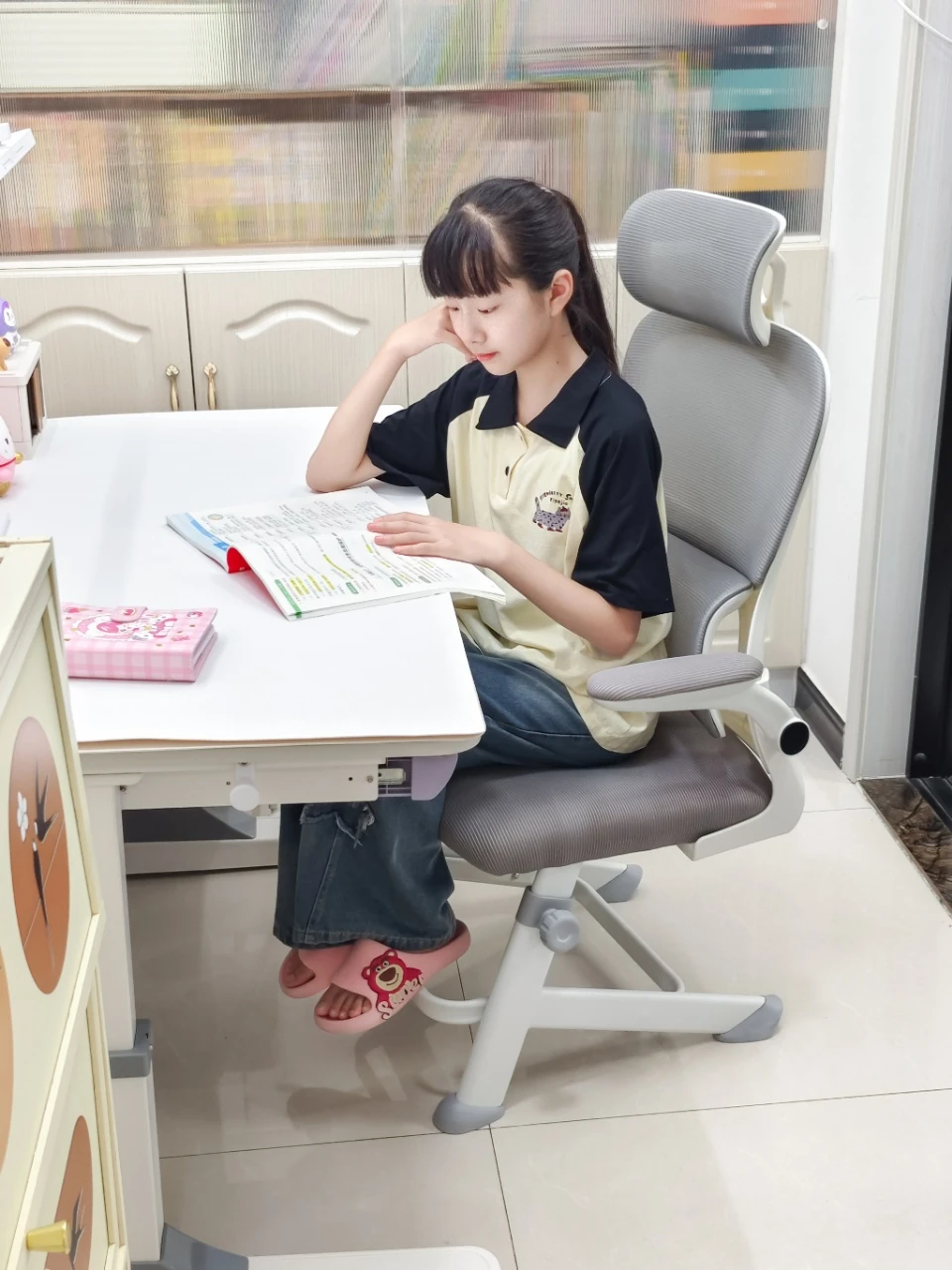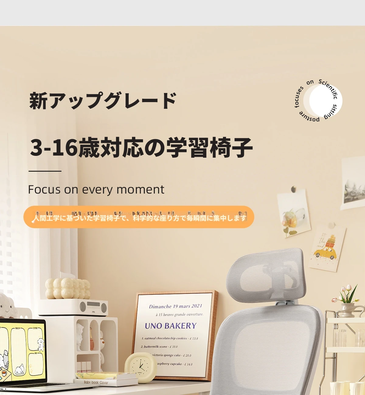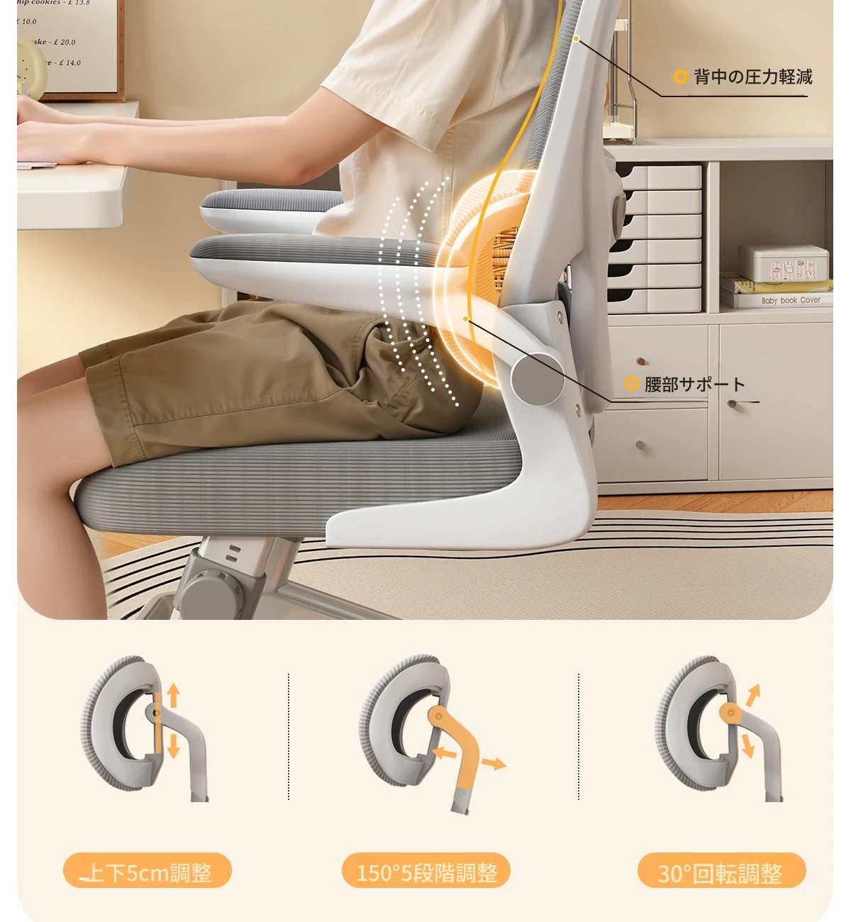 子供用学習椅子 - 調整可能な姿勢矯正機能付き!小学生に最適なデザインで、快適な座り心地を実現。デスクワークや勉強に最適な昇降式パソコンチェア!お子様の成長に合わせて調整可能!