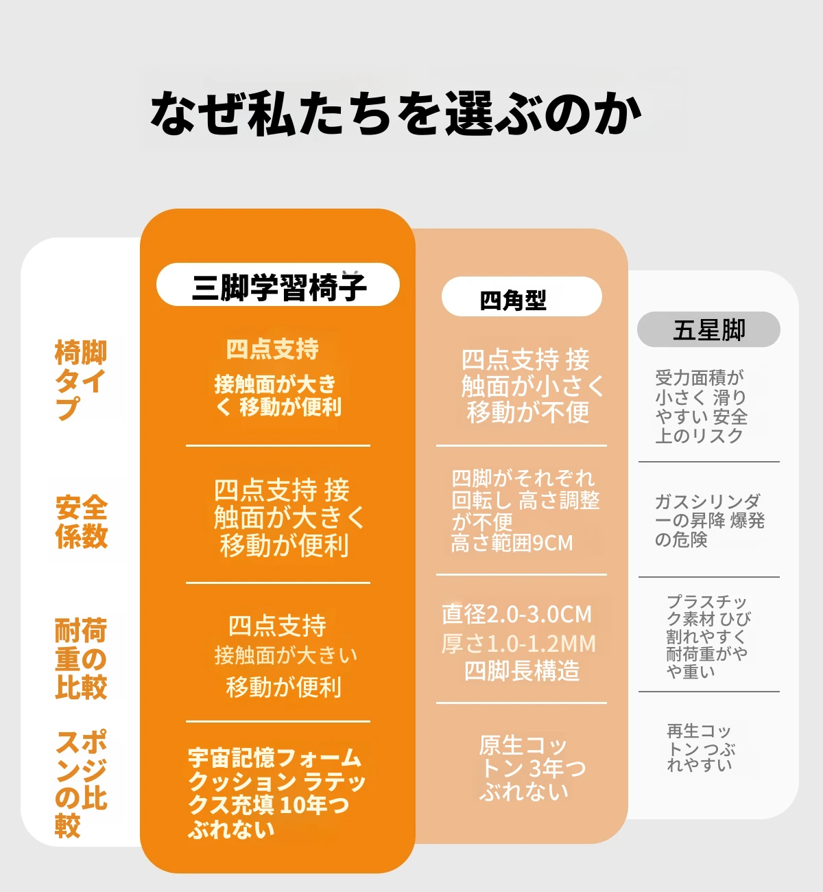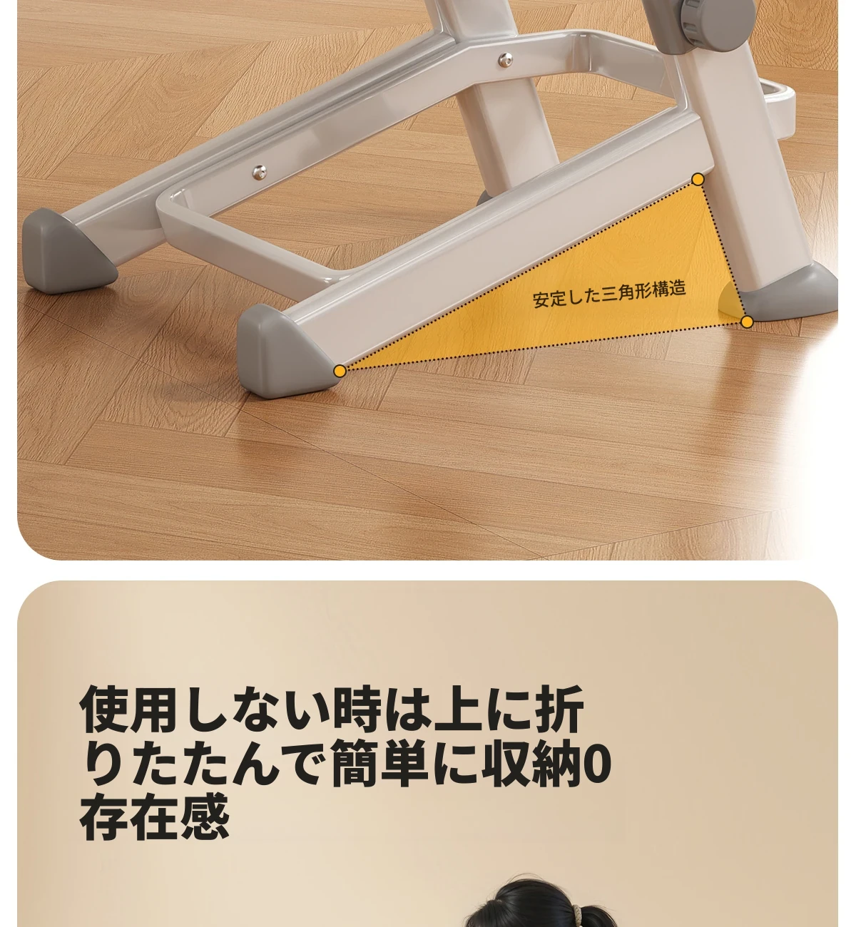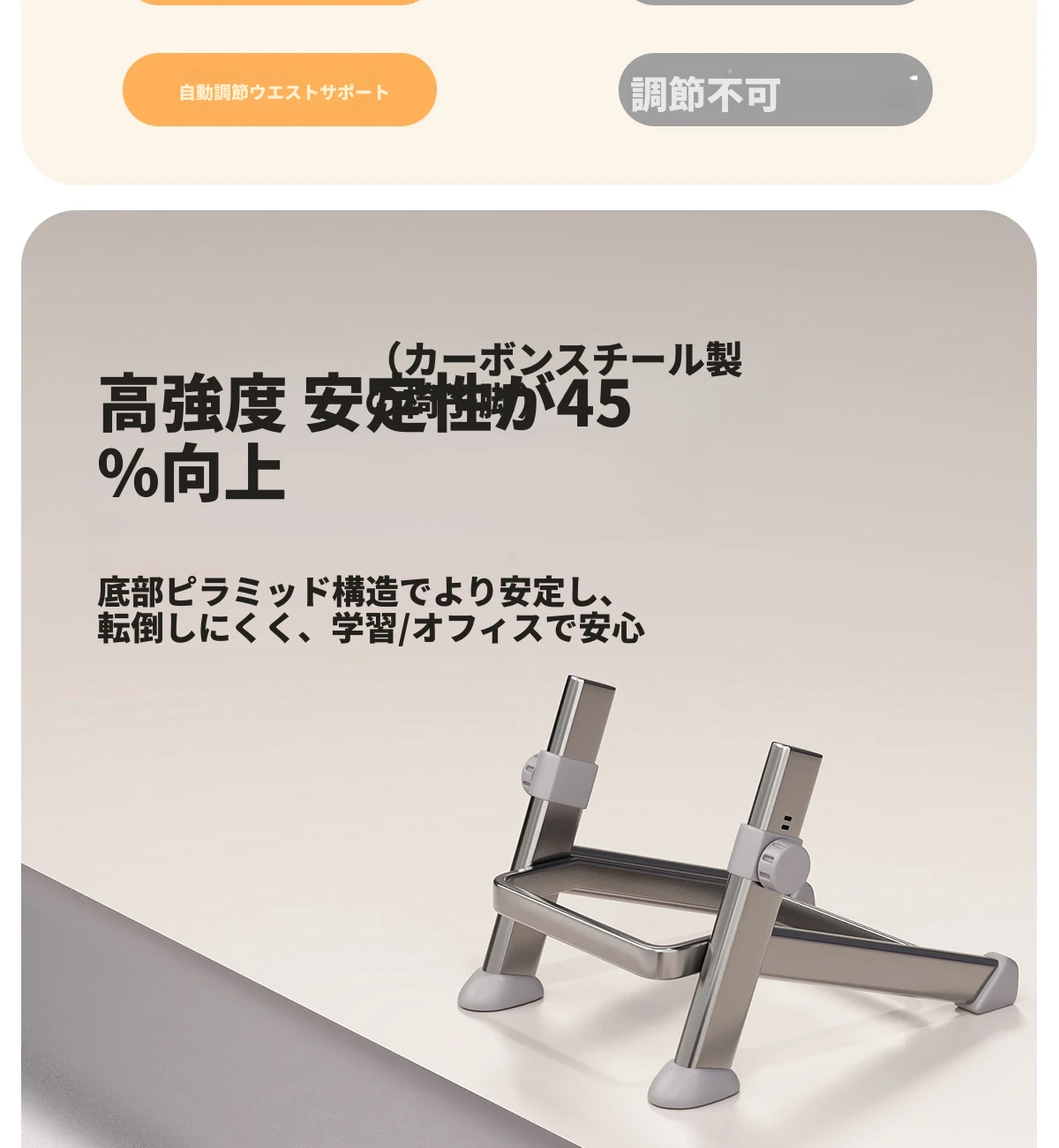 【三角永定脚-ミストグレー】⭐自動適応浮遊ウエストサポート+高反発スポンジクッション+7段階昇降調節+ヘッドレスト