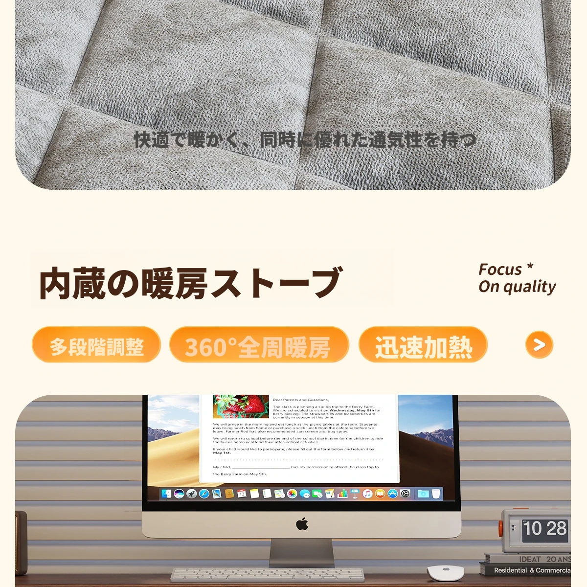 【フランネル毛布+温度調整ヒーター】50ナチュラルウッドカラー-折りたたみ可能 順豊発送