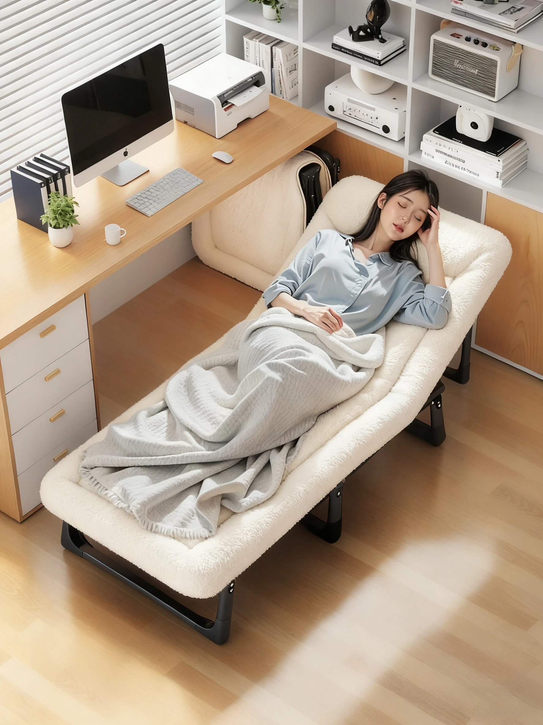 お昼寝にも最適!折りたたみ式の多機能リクライニングベッド - オフィスや病院での快適な休息にぴったりな携帯型シングルベッド。場所を取らず、手軽に使える便利アイテム!