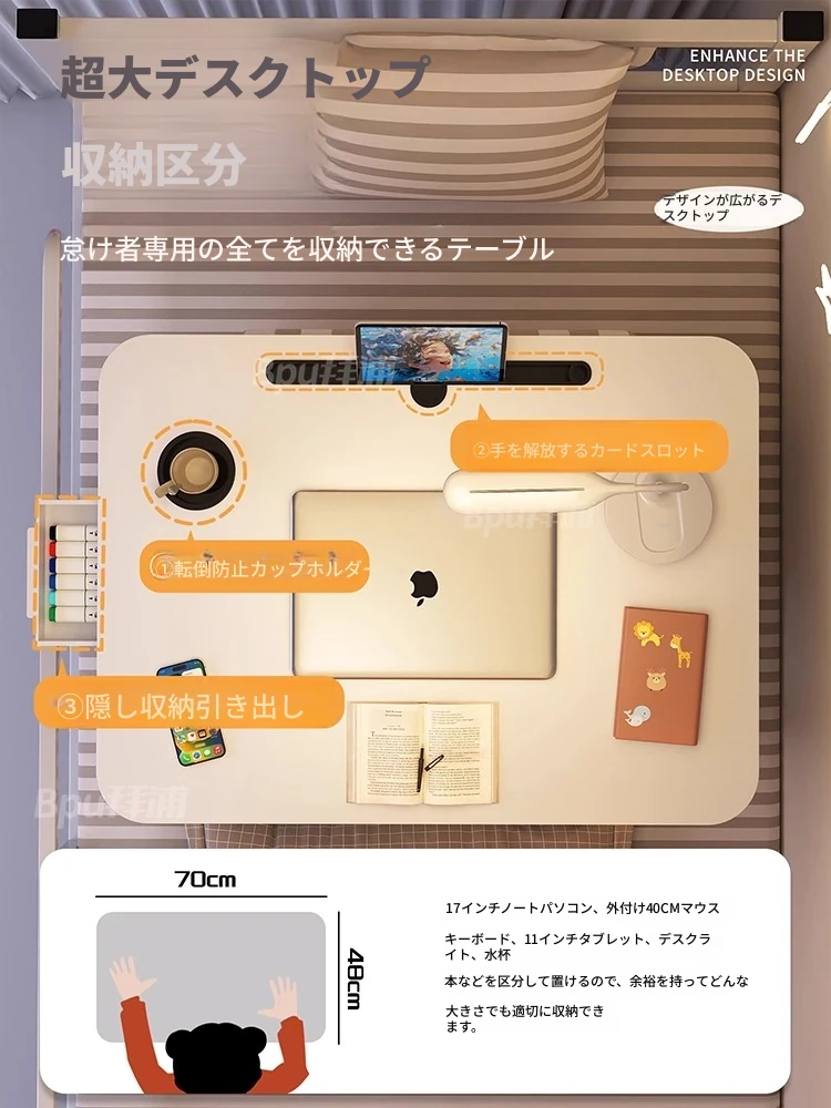 移動式折りたたみ書斎デスク - 家庭用・ベッドサイドに最適な簡易学習デスク!コンパクトでスタイリッシュなデザイン、小さなオフィスにもぴったり。快適な作業環境を実現します!