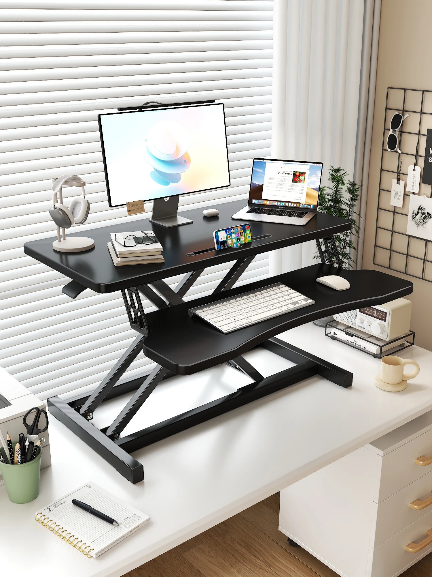 昇降可能なスタンディングデスク - コンパクトな折りたたみデスク、ノートパソコンスタンド付き!快適な作業環境を実現し、健康的なライフスタイルをサポートします。自宅やオフィスに最適!