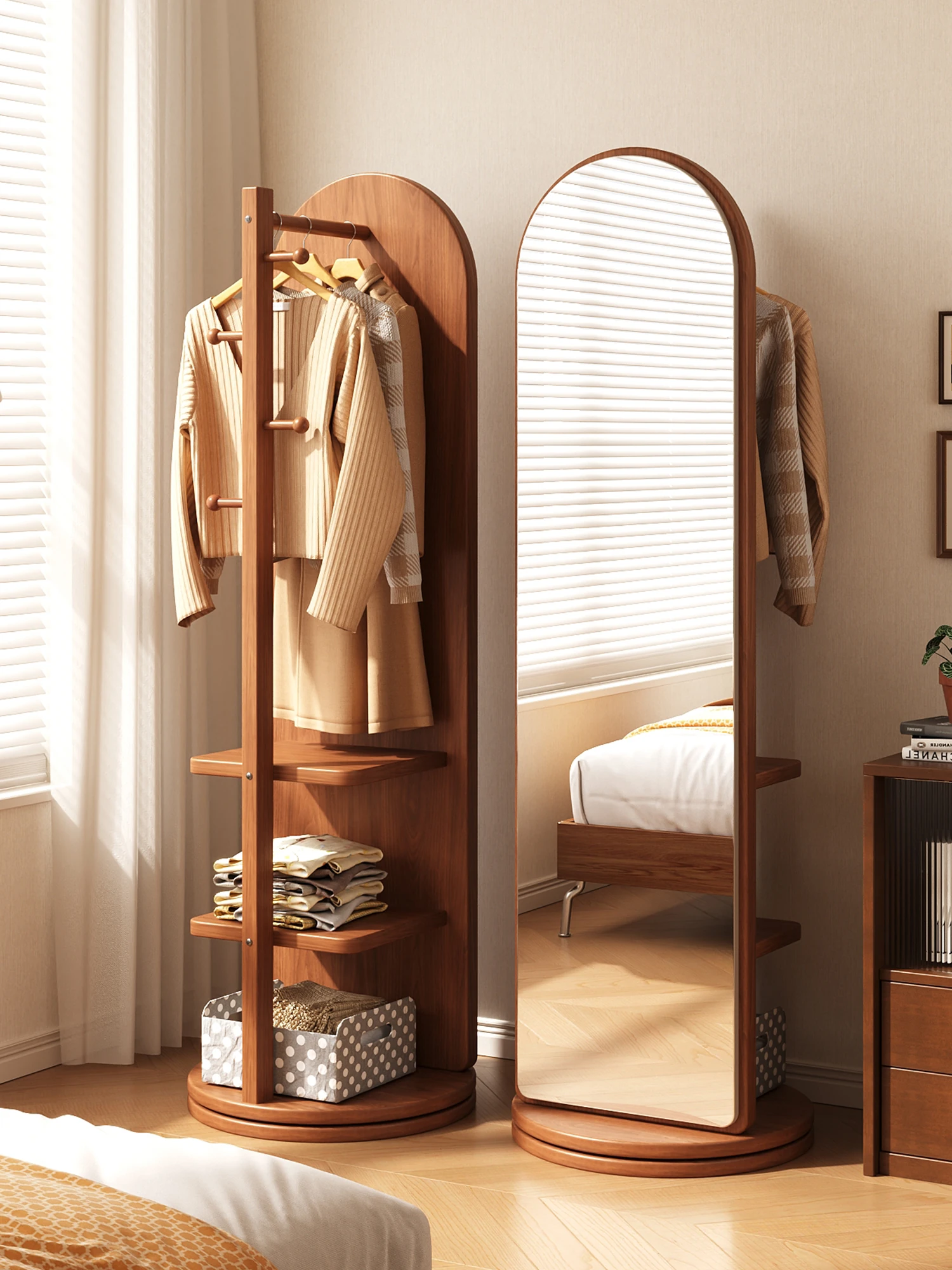 高品質の無垢材ハンガー一体型全身鏡!回転式のスタンドミラーで、寝室に最適。移動も簡単な大きな試着鏡で、毎日のコーディネートを楽しくサポートします!