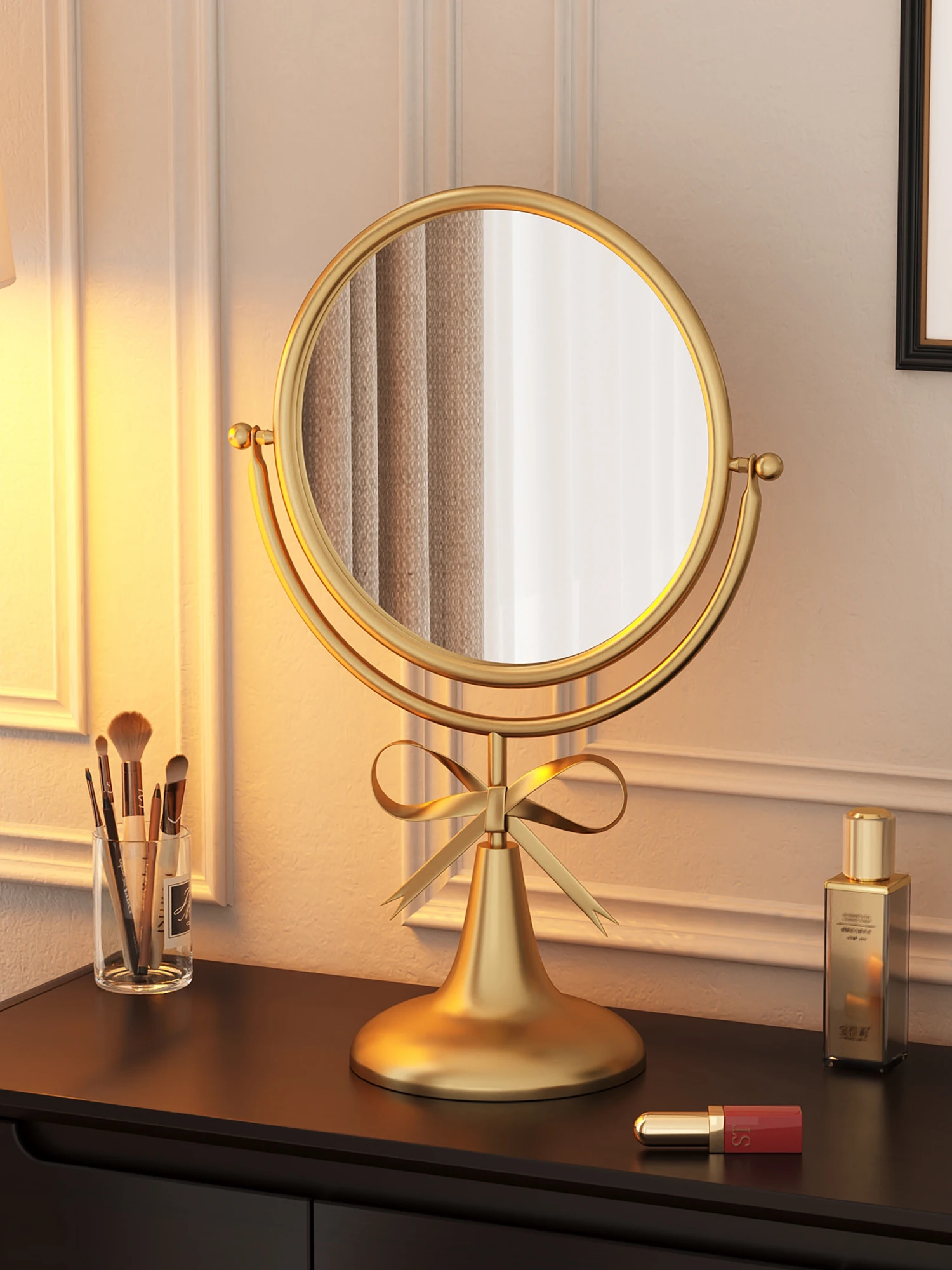 高精細なデスクトップ化粧鏡 - ゴールドの回転式メイクアップミラー、スタイリッシュなインテリアにぴったり!大きなサイズで自宅の寝室に最適、あなたの美しさを引き立てます。