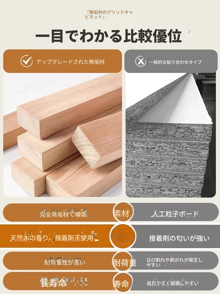 無垢材の格子キャビネット|単層デザインのスタンド式書棚|収納力抜群のソファ間仕切り|リビングにぴったりなディスプレイキャビネット|おしゃれで実用的な収納棚