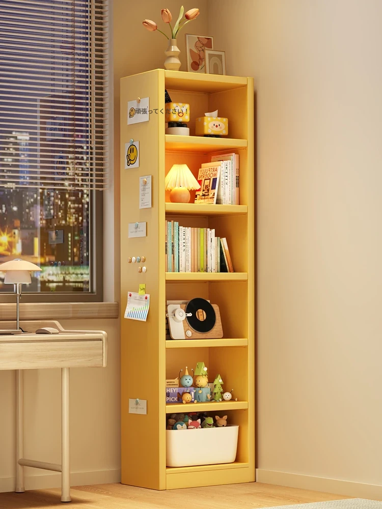 スチール製ブックキャビネット 子供部屋に最適!ベッドサイドや廊下の隙間にぴったりなスリムな書棚。角にフィットするデザインで、収納力抜群のフロアスタンド収納庫。おしゃれで機能的な収納スペースを実現!
