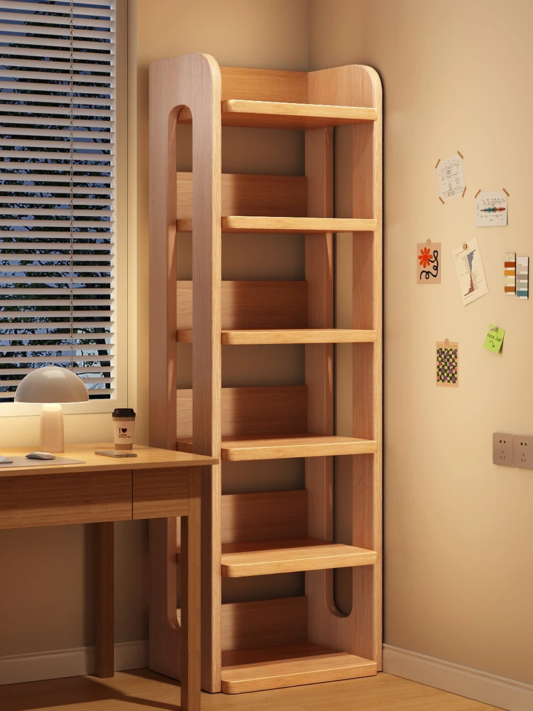 おしゃれな実木製コーナーラック!狭い隙間にもピッタリフィットし、子供部屋の収納スペースを有効活用。壁に寄せておけるシンプルなデザインで、床に置いても邪魔にならない便利な収納棚。