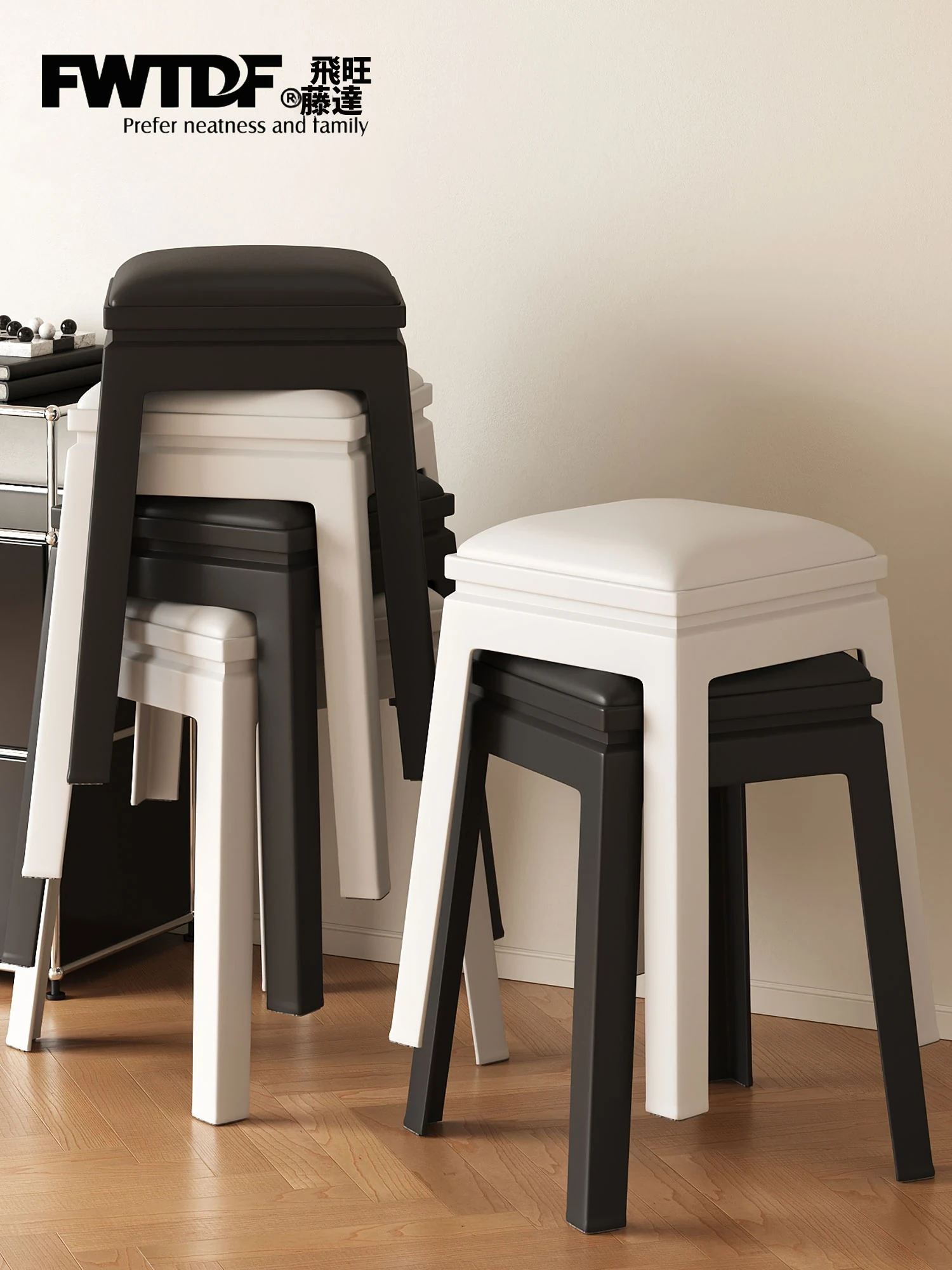厚手プラスチック製スツール - 家庭用・スタッキング可能・クッション付き・高級感漂うデザイン!リビングやダイニングに最適なサブチェアとして、スタイリッシュで快適な座り心地を提供します。