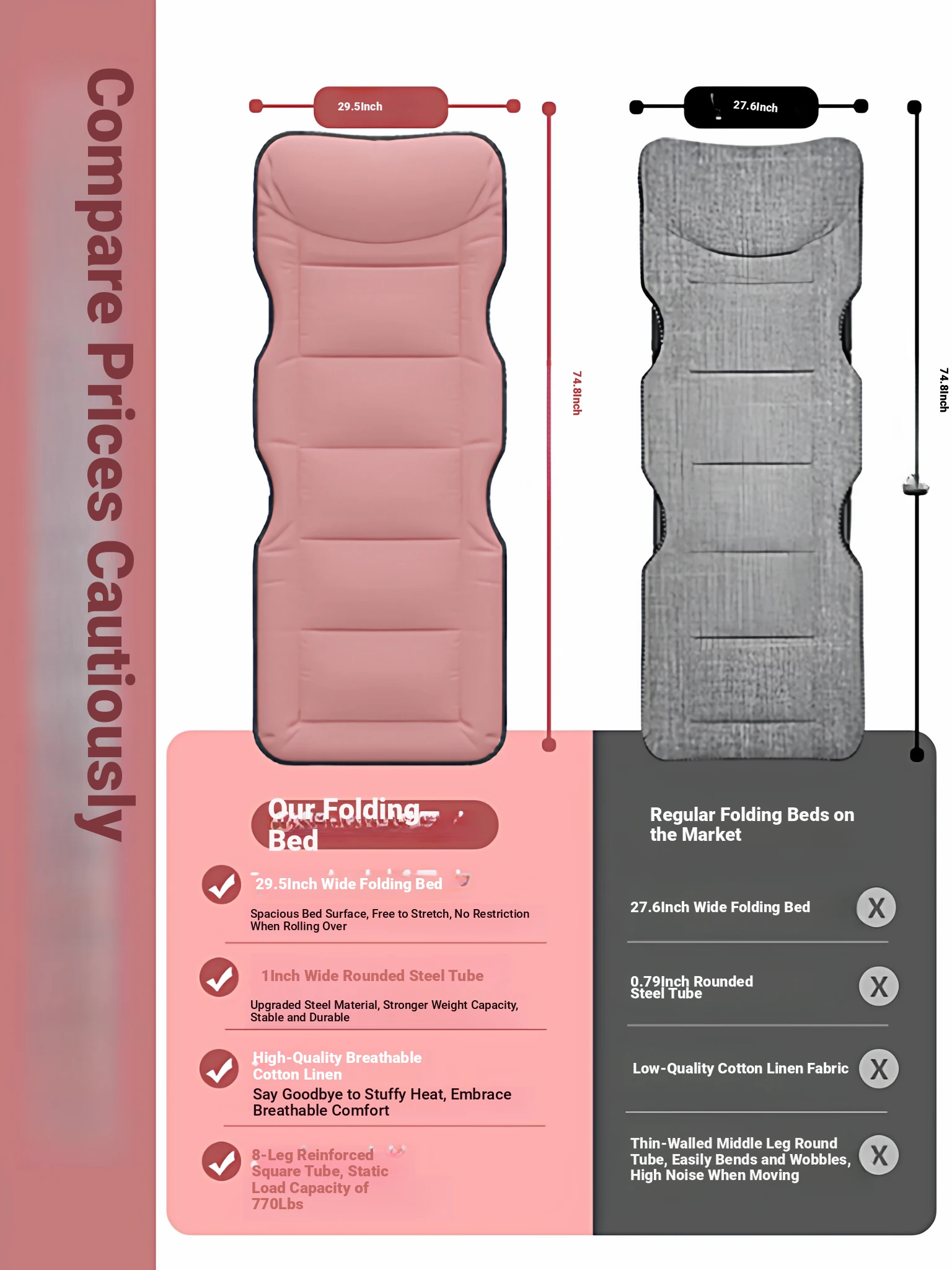 Portable Folding Bed for Office Naps - Easy Setup Single Bed for Hospital Care, Military Style Nap Chair, Perfect for Quick Rest Anytime!
