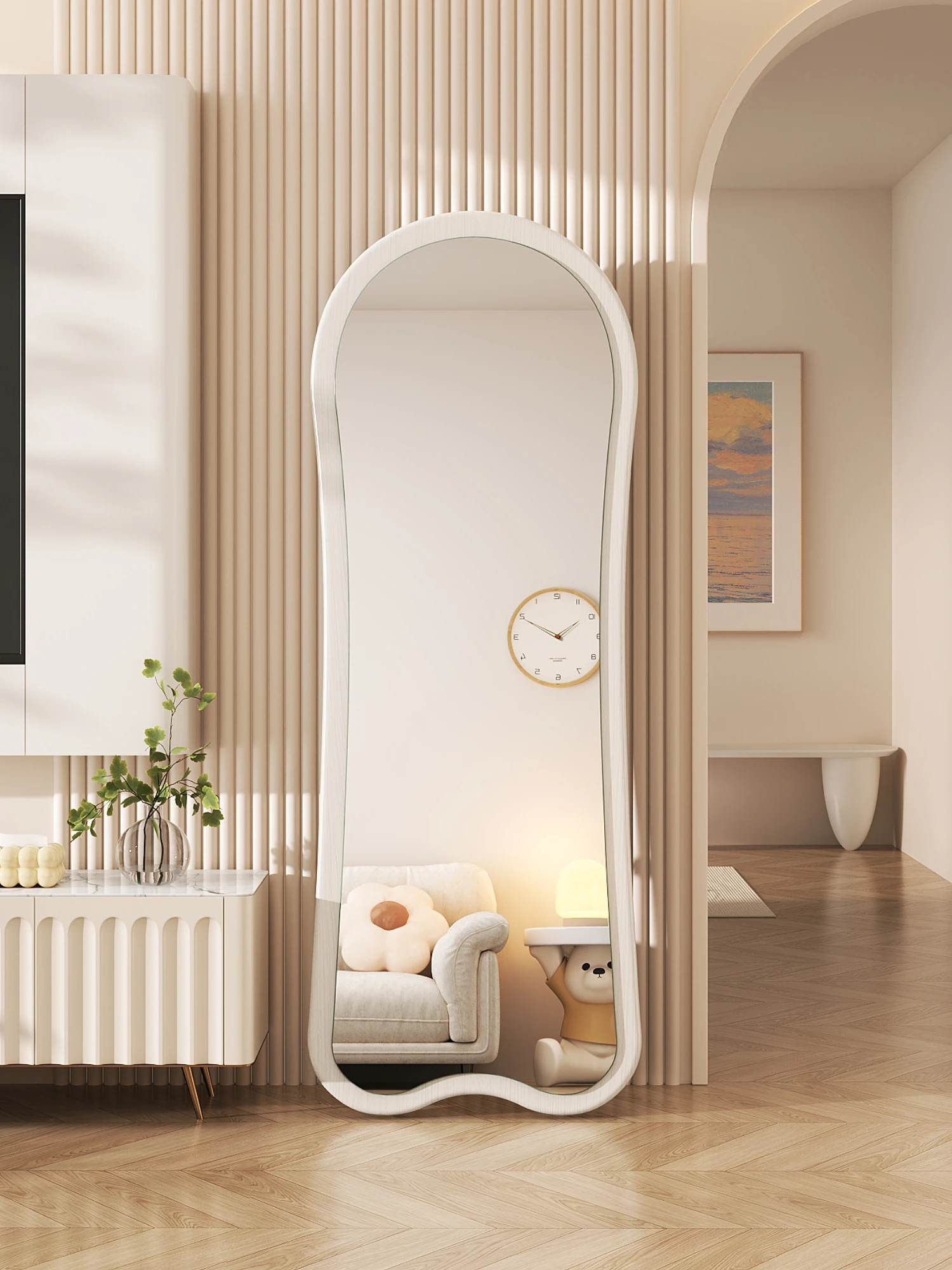 Elegant Cream Full-Length Mirror - Stylish Floor and Wall-Mounted Mirror for Women’s Bedrooms, Unique Shape Dressing Mirror for Home Use, Perfect for Try-On and Enhancing Your Space