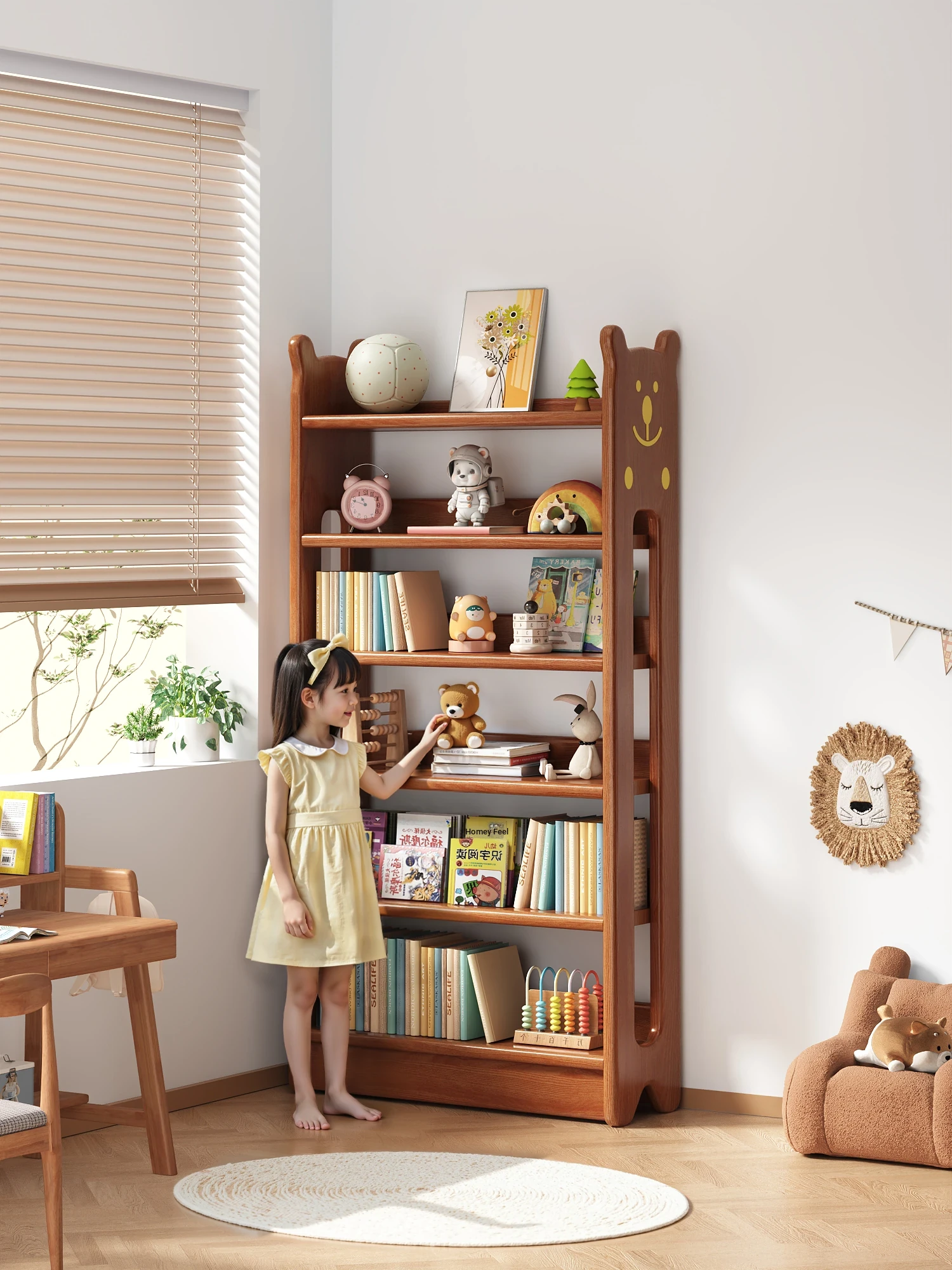 Children's Solid Wood Bookshelf - Floor-standing Storage Rack for Living Room, Slim Wall-mounted Bookcase, Simple Multi-layer Organizer for Home Use