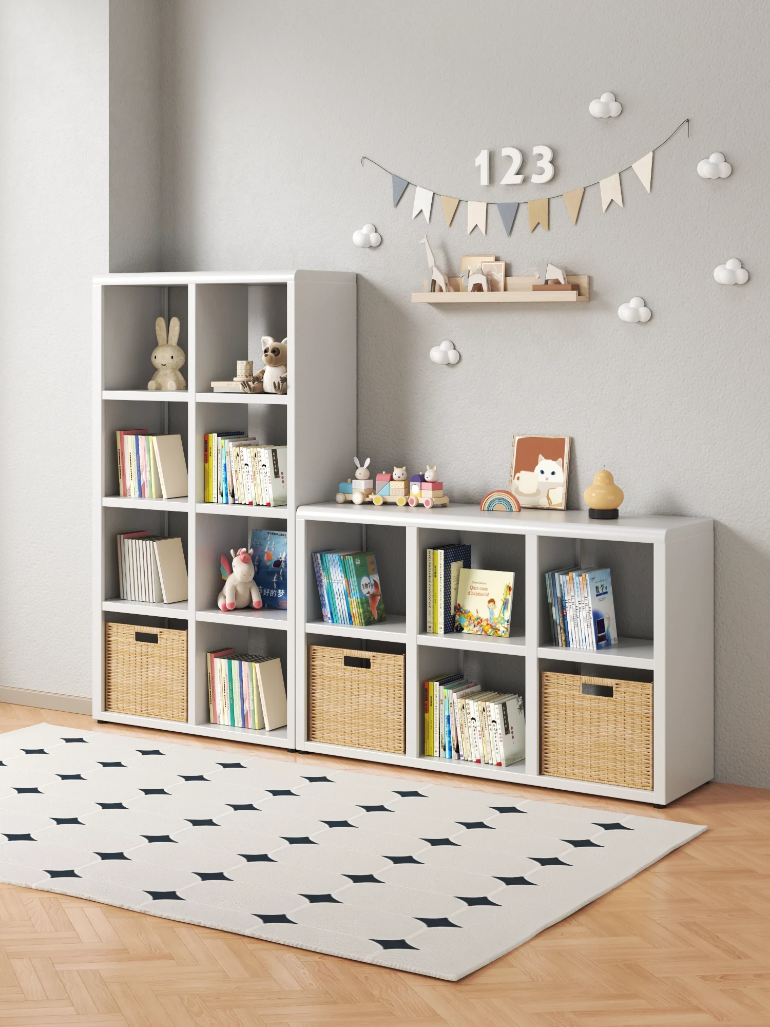 Steel Bookcase with Window Shelf - Multi-Layer Storage Unit for Kindergartens, 8-Cube Corner Rack, Stylish and Functional Low Cabinet for Organizing Books and Toys