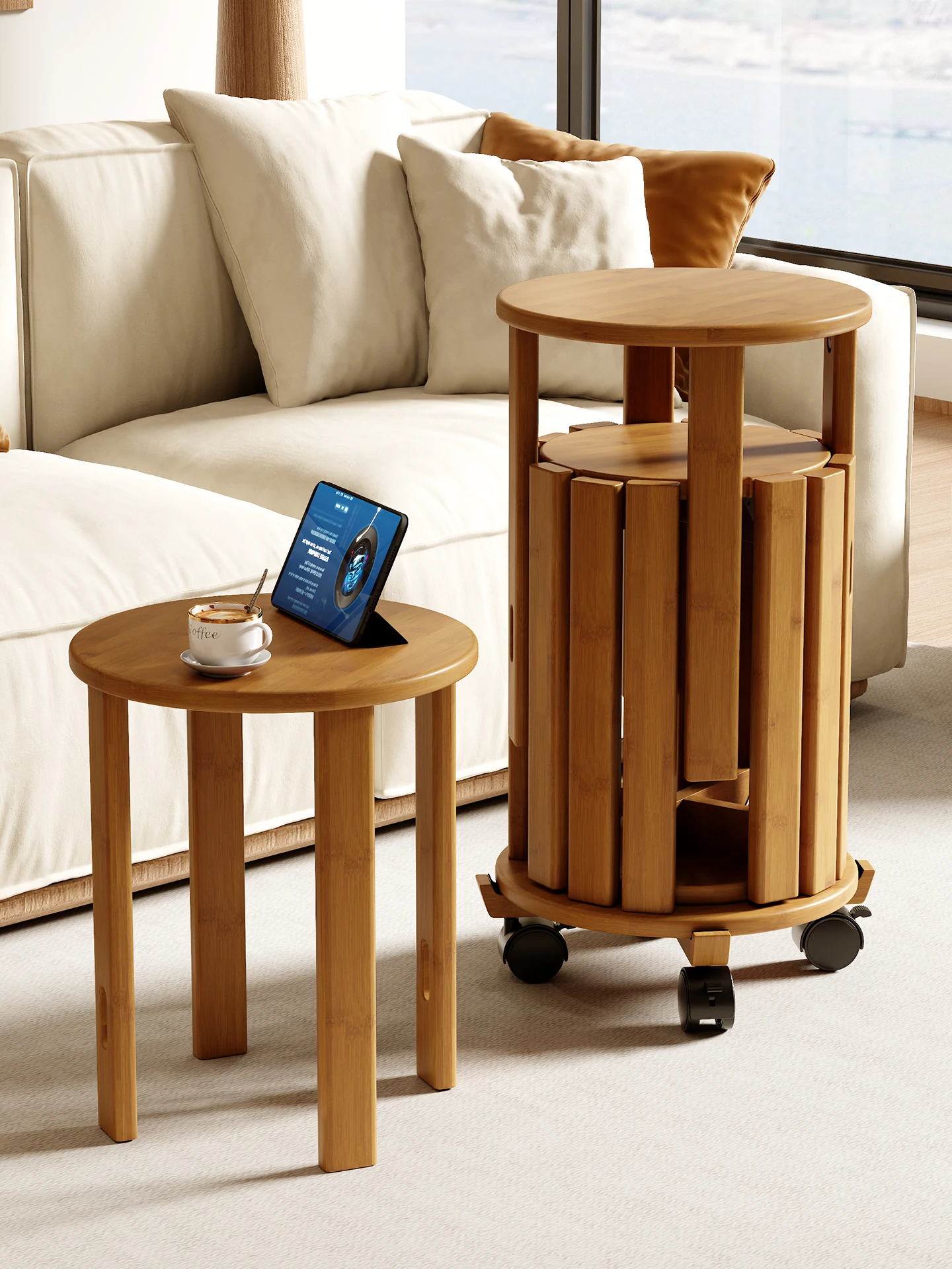 Modern Stackable Bamboo Stool - Space-Saving Chinese Style Stacking Bench for Living Room, Convenient and Versatile Round Seat for Extra Seating and Easy Storage