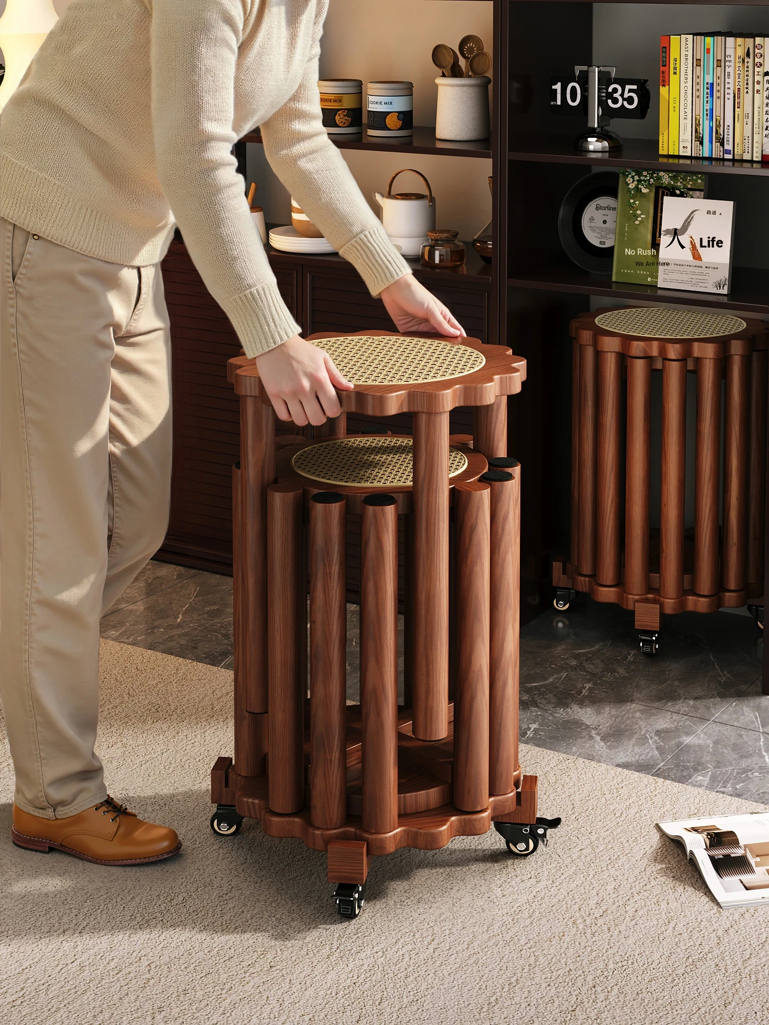 Solid Wood Stackable Stool - Durable Rattan Home Stool, Vintage Style Round Seat, Perfect for Guests and Extra Seating, Modern Design