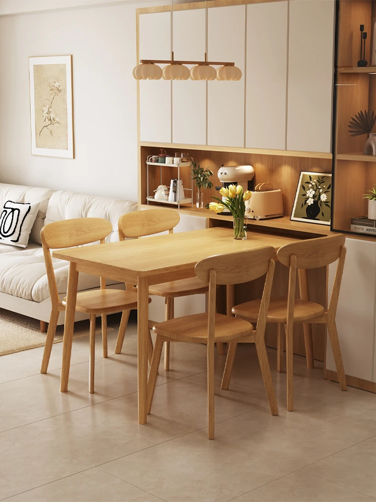 Solid Wood Rectangular Dining Table Set - Modern Minimalist Scandinavian Style for Small Spaces - Full Solid Wood Dining Table with Chairs, Perfect for Cozy Homes